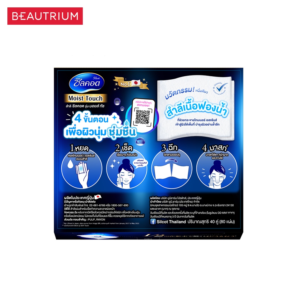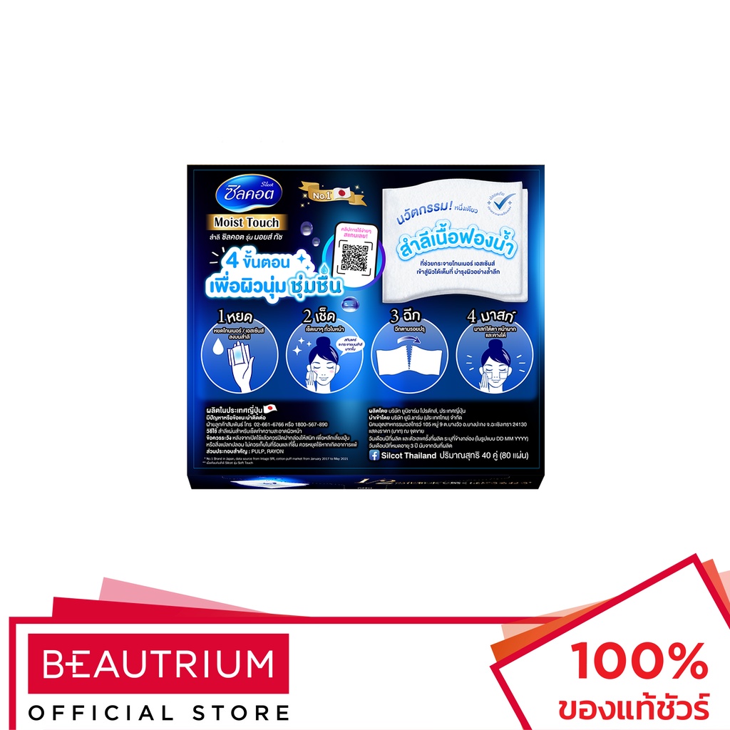 SILCOT Moist Touch ผลิตภัณฑ์ทำความสะอาดผิวหน้า 40pcs