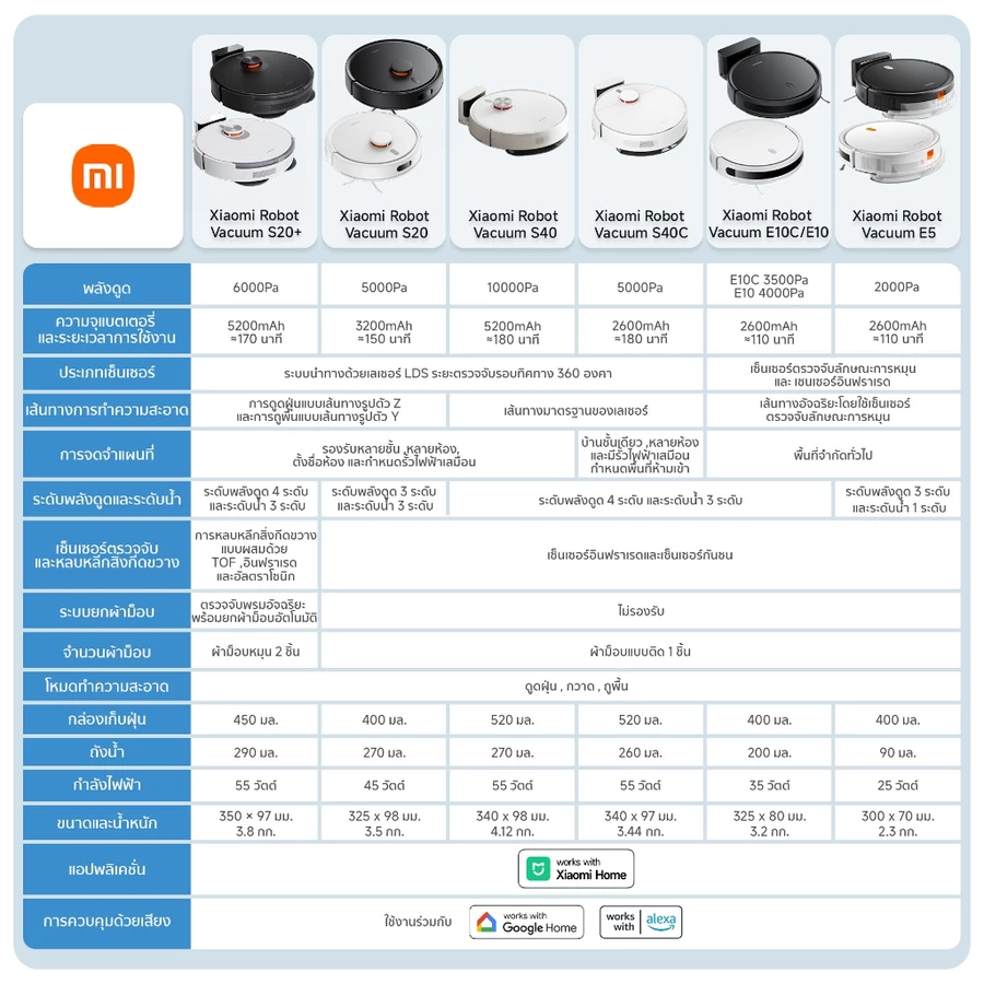 Xiaomi Robot Vacuum S20+/S20 แรงดูด 6000/5000Pa สแกนด้วยยระบบ LDS หุ่นยนต์ดูดฝุ่นอัจฉริยะ ประกัน1 ปี