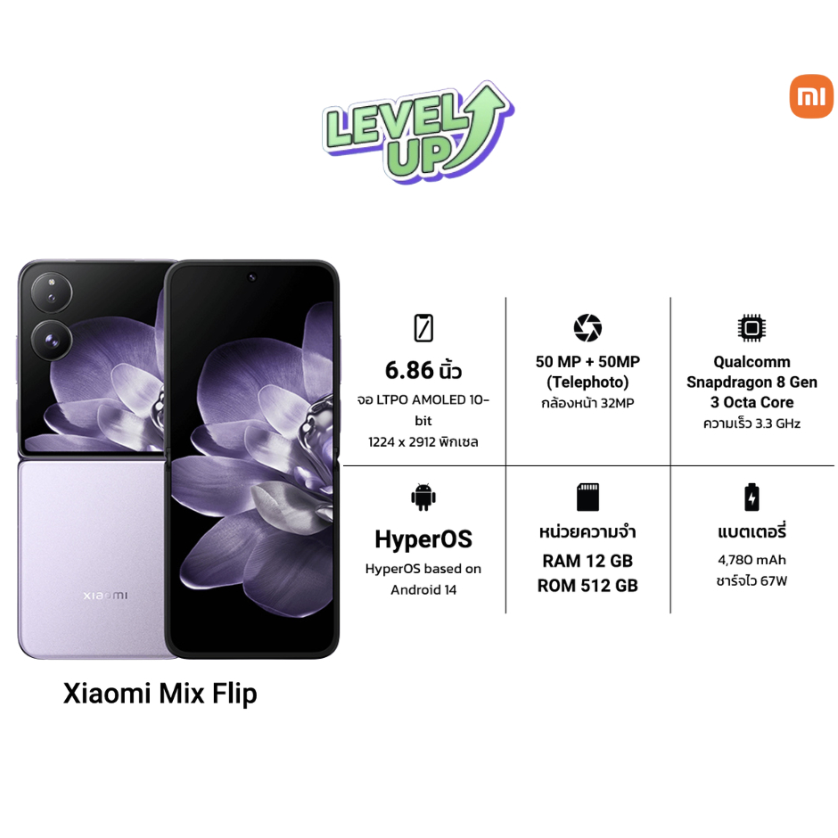 [พร้อมส่ง] Xiaomi MIX Flip (12/512GB) เลนส์ออปติคอล Summilux จาก Leica| AI ชิปเซ็ต Snapdragon 8 Gen 3