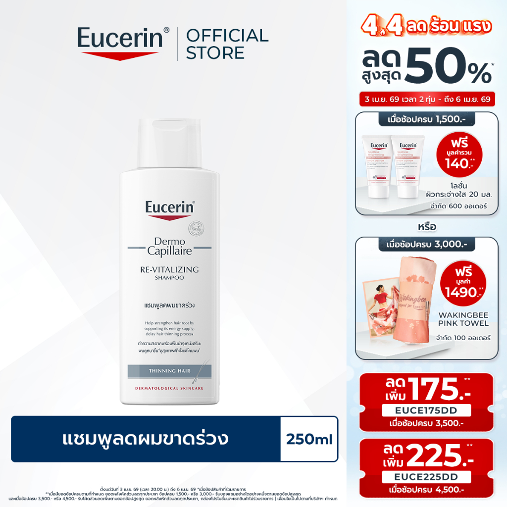 Eucerin DermoCapillaire RE-VITALIZING SHAMPOO THINNING HAIR 250 ML ยูเซอริน แชมพูลดผมขาดหลุดร่วง บำรุงเส้นผม