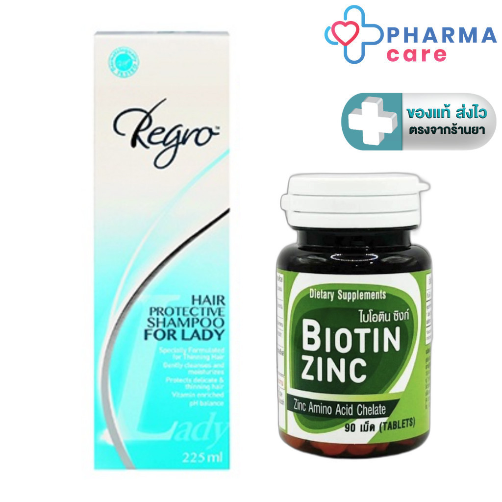 Biotin Zinc ไบโอทิน ซิงก์ 90 เม็ด / Regro Hair Protective Shampoo for Lady รีโกร แชมพูสูตรผู้หญิง [PC]
