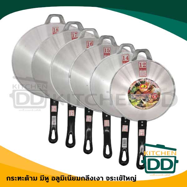 -ห้ามเผา- กระทะด้ามกลึงเงา หนา 1.5 มม อลูมิเนียม จระเข้ใหญ่ - 1 ใบ โปรดเลือก