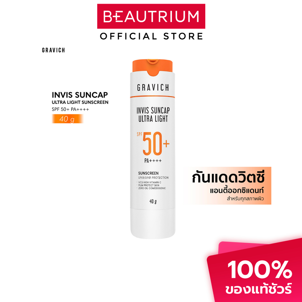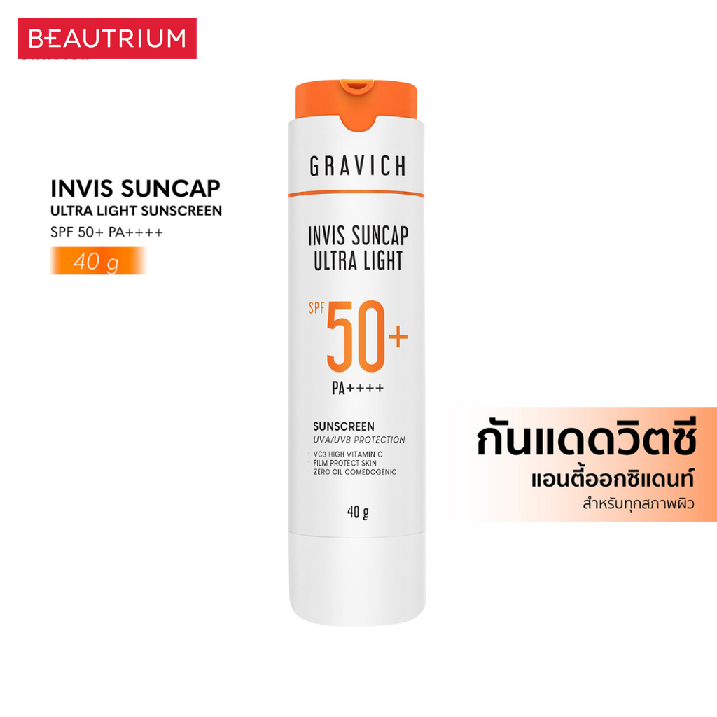 GRAVICH Invis Suncap Ultra Light Sunscreen SPF50+ PA++++ ผลิตภัณฑ์ป้องกันแสงแดดสำหรับผิวหน้า 40g