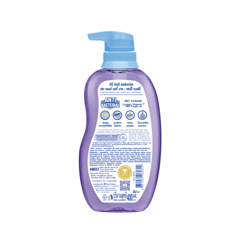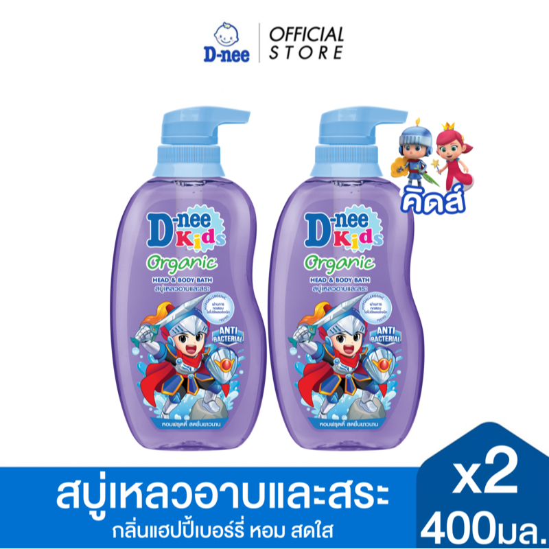 [แพ็ค2] D-nee ดีนี่ คิดส์ สบู่เหลวอาบและสระ กลิ่นแฮปปี้เบอร์รี่ 400 มล.x2, สีม่วง