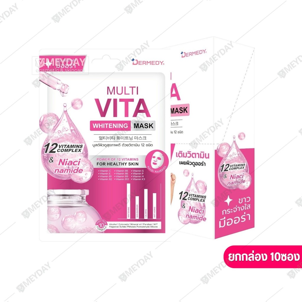 (ยกกล่อง 10 ซอง) Dermedy Multi Vita Mask เดอร์มีดี มัลติ ไวต้า มาส์ก แผ่นมาส์กบำรุงผิวหน้า 25g