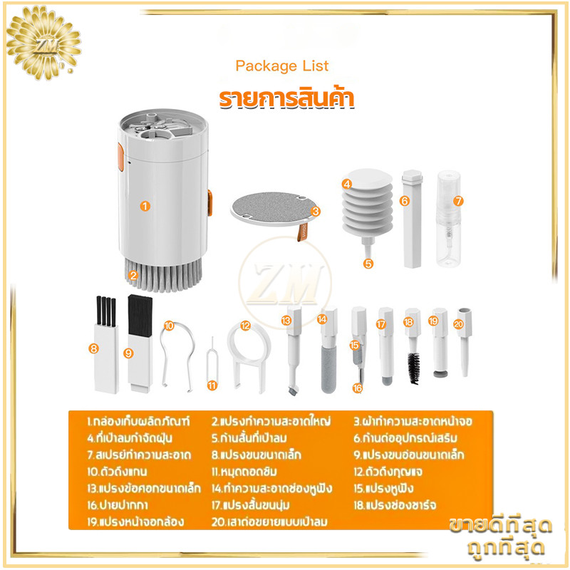 ชุดทำความสะอาด 20-in-1 ชุดทำความสะอาดคีย์บอร์ด แปรงทําความสะอาดหน้าจอ, ทําความสะอาดหูฟัง,น้ํายาล้างคีย์บอร์ด อเนกประสงค์
