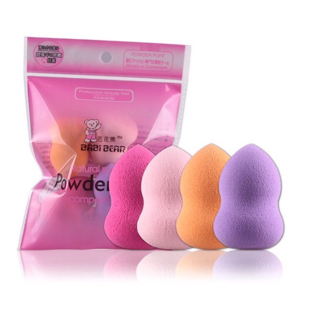 Babibear ชุดพัฟรองพื้นทรงหยดน้ำ 1set 4 ชิ้น