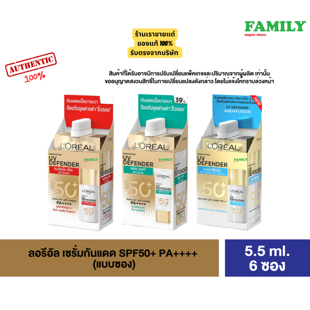 LORÉAL Paris ลอรีอัล ครีมกันแดด แบบซอง ขนาด 5.5 มล. (มี 3 สูตรให้เลือก)