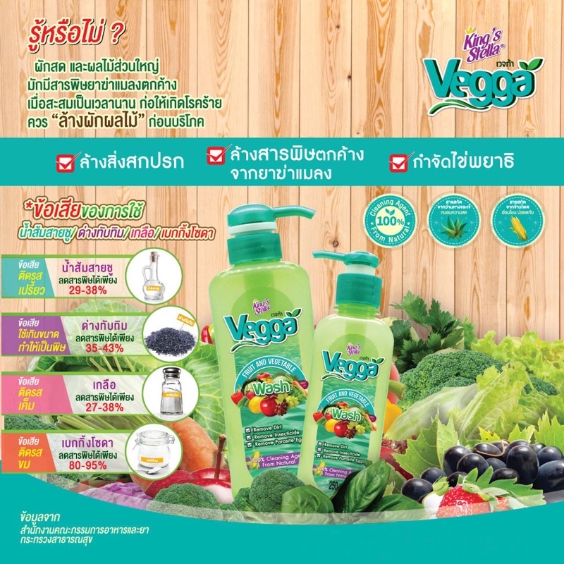 Vegga เวจก้า น้ำยาล้างผัก ออแกนิค 500 มล. น้ำยาล้างผักและผลไม้ คิงส์สเตลล่า เวจก้า น้ำยาล้างผลไม้