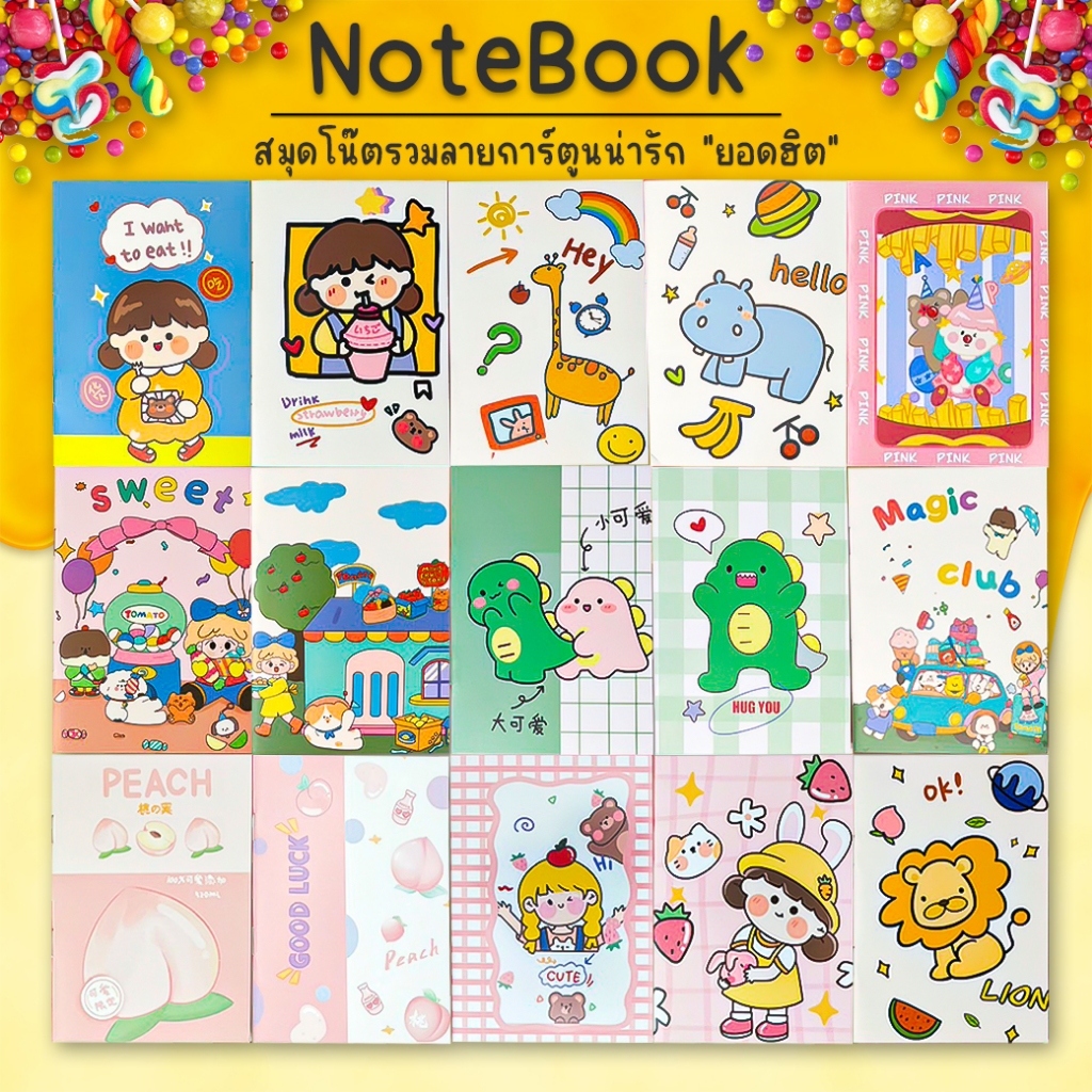 🌈สมุดโน๊ตแบบพกพา🌈ลายเส้น✔️พร้อมส่ง เครื่องเขียน สมุดจดบันทึกโน๊ตการ์ตูน เครื่องเขียนนักเรียน