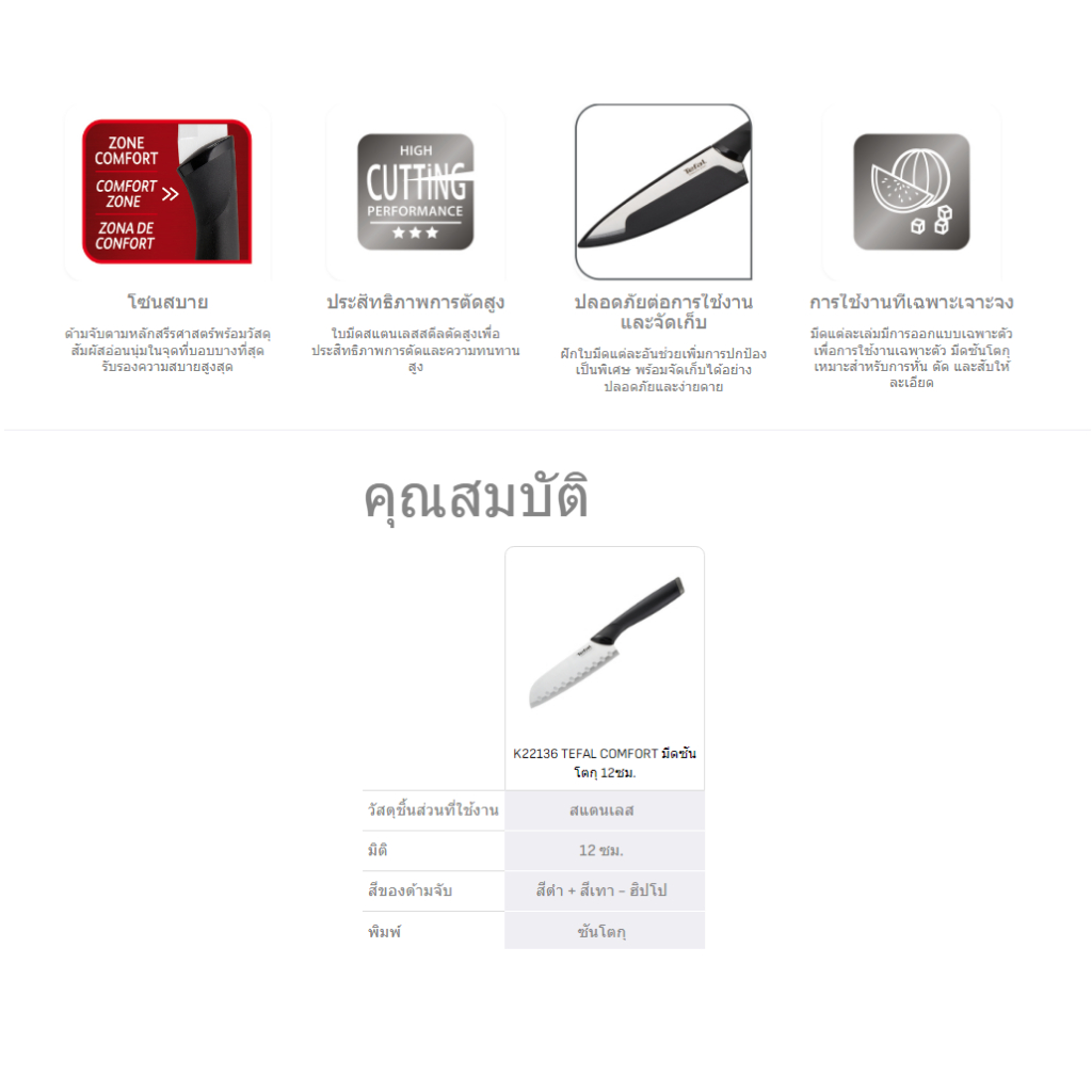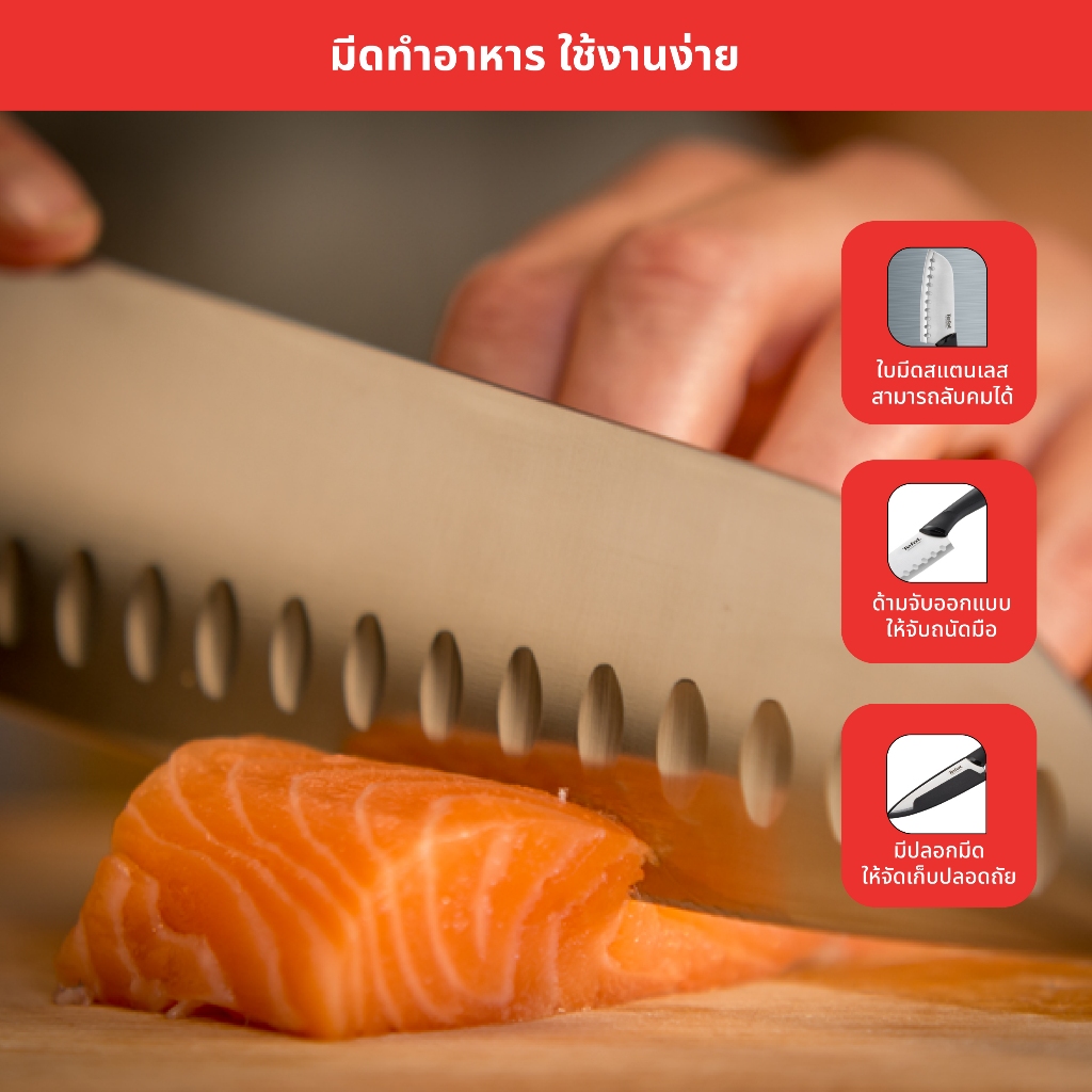 Tefal Comfort Santoku Knife มีดซันโตกุ พร้อมฝาครอบใบมีด ขนาด 12 ซม. รุ่น K2213604 รับประกัน 2 ปี