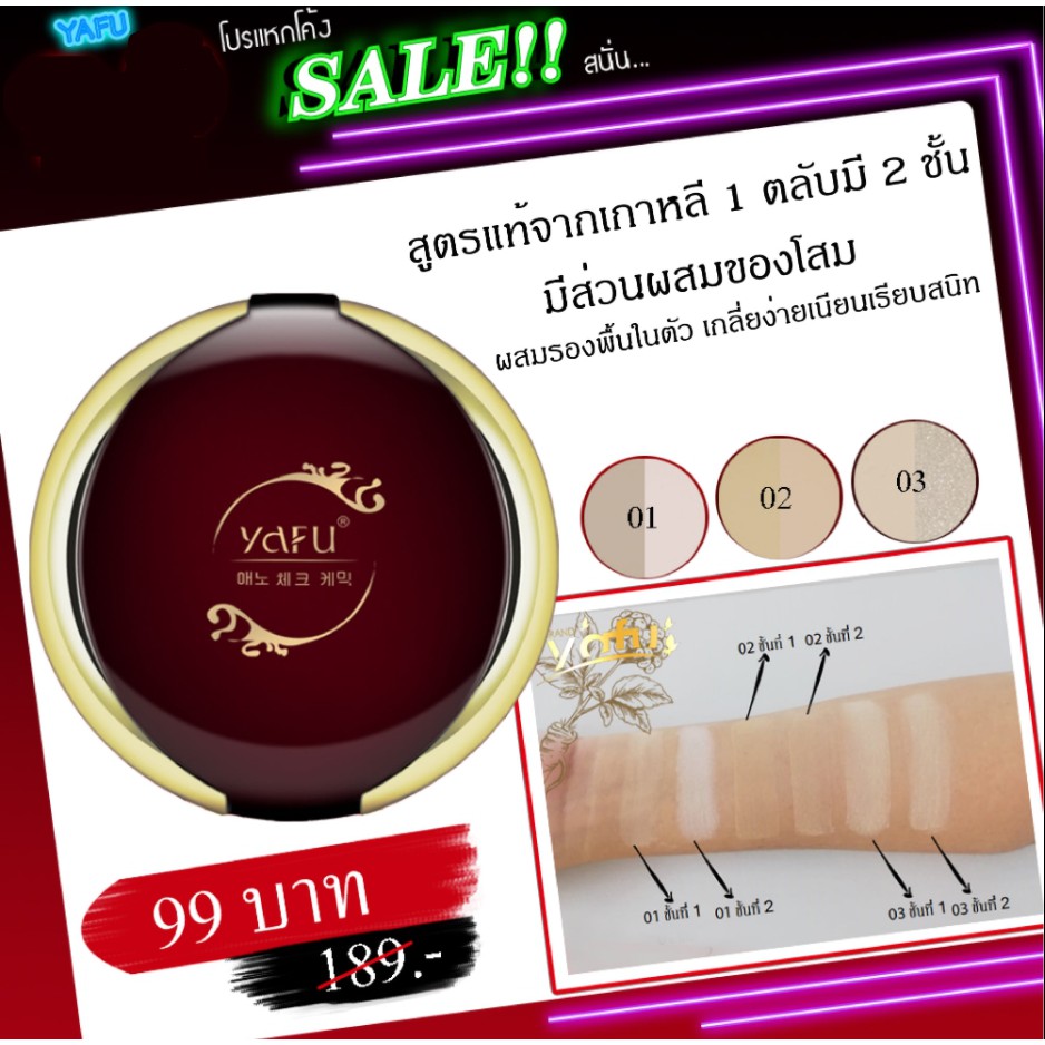 💥รับประกันของแท้💥 แป้ง ยาฟู YAFU แป้งพัฟ 2 ชั้น มีรองพื้นในตัว ปกปิด เกลี่ยง่าย มีสารสกัดจากโสม คุณภาพ เกินราคา