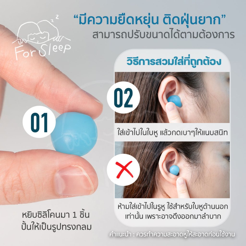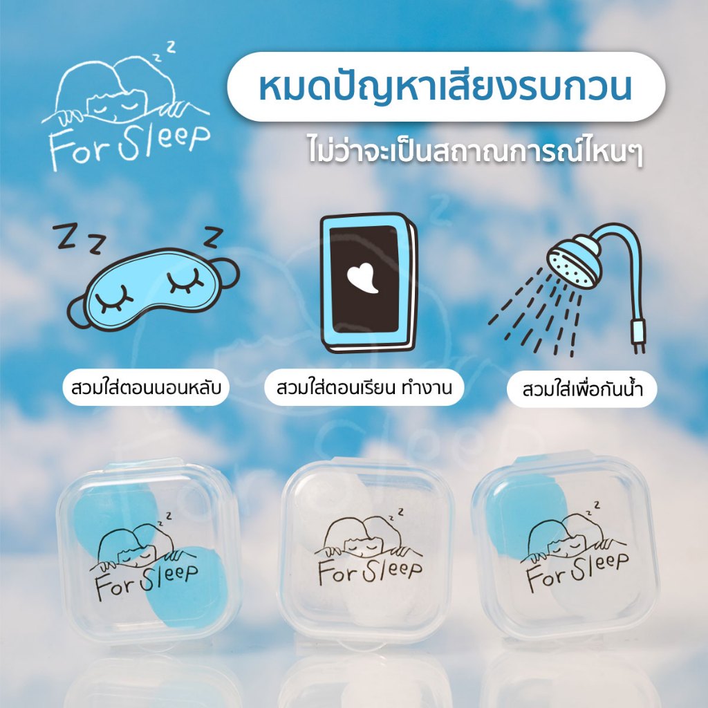 For Sleep ที่อุดหู ซิลิโคน ไม่เจ็บหู ลดเสียงกรน ลดเสียง รบกวน เวลานอน หลับสบาย กันรบกวน กันน้ำ ใช้ซ้ำได้