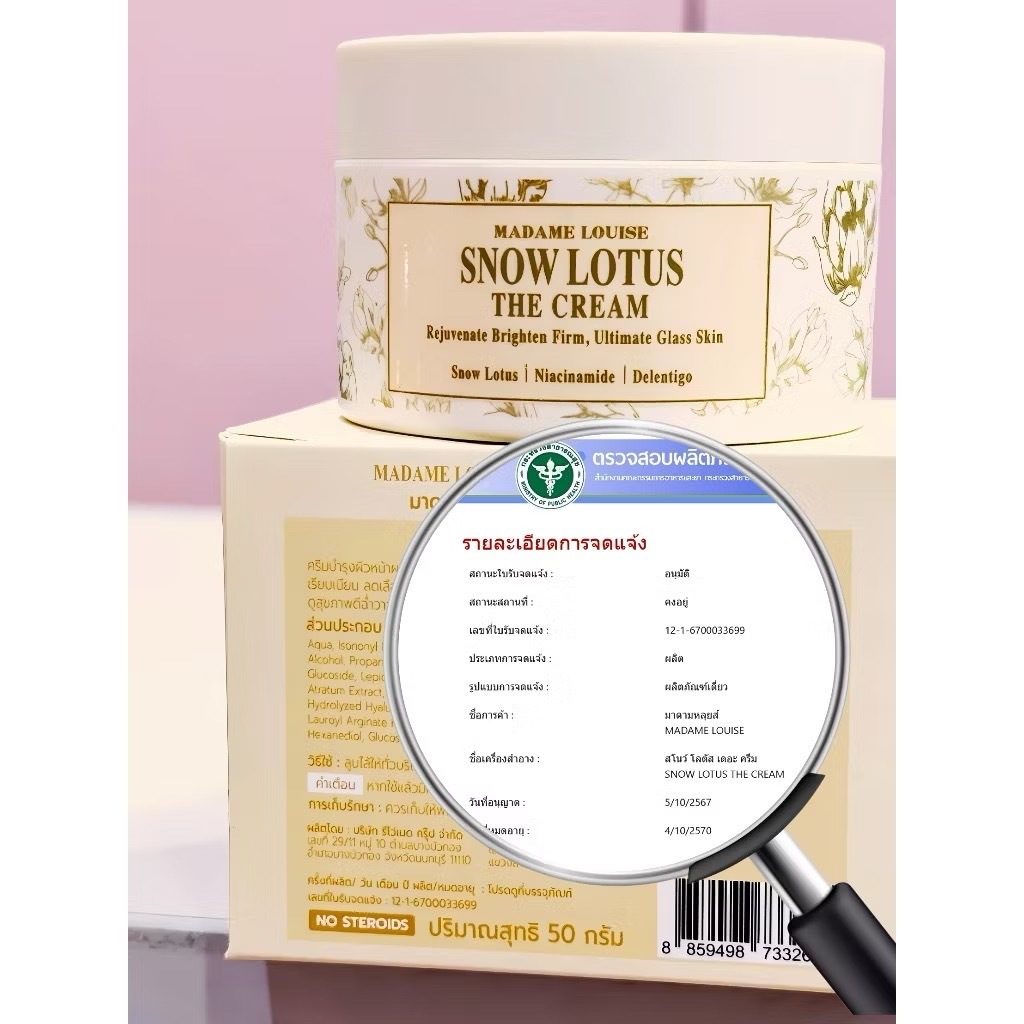 (ส่งฟรี มีเก็บเงินปลายทาง)ครีมบำรุงผิวหน้าบัวหิมะ Madame Louise Snow Lotus The Cream 50 กรัมของแท้!!