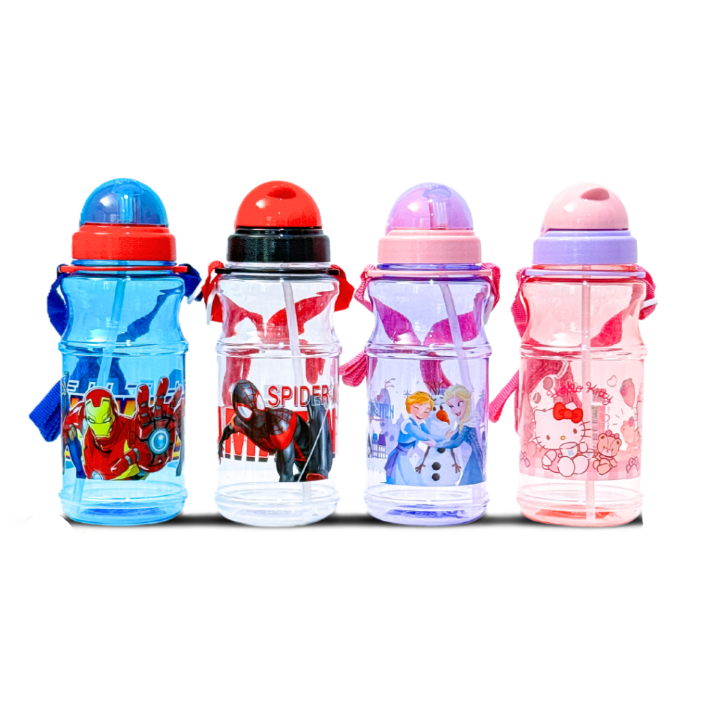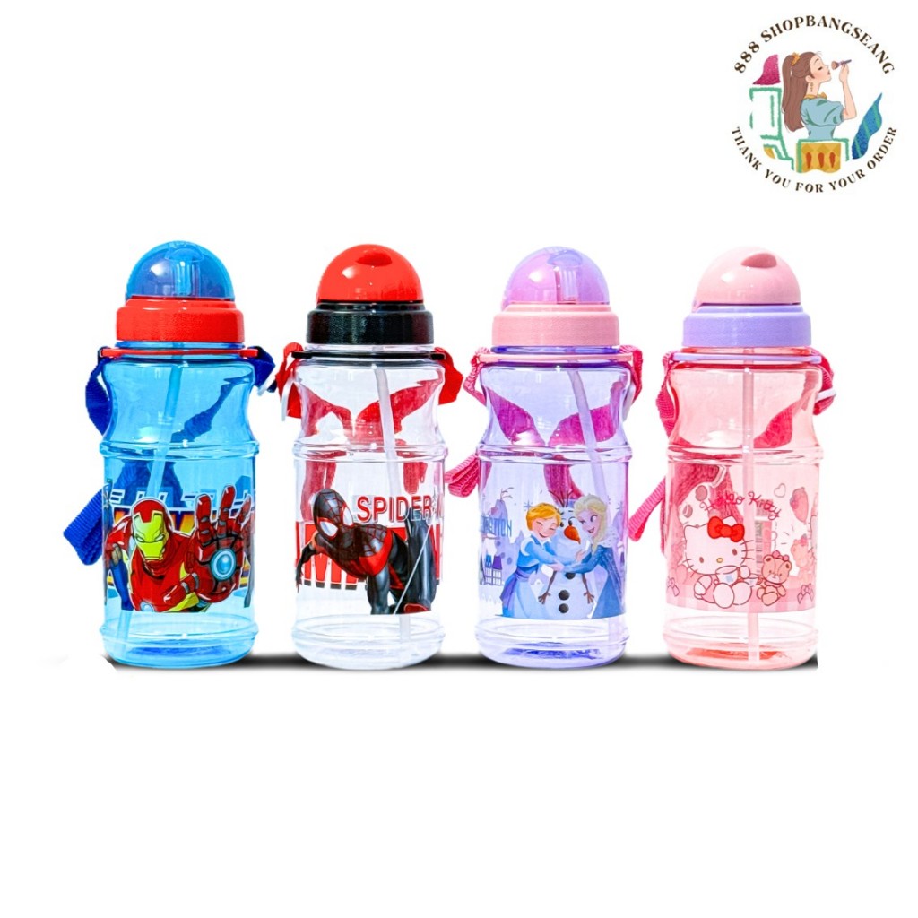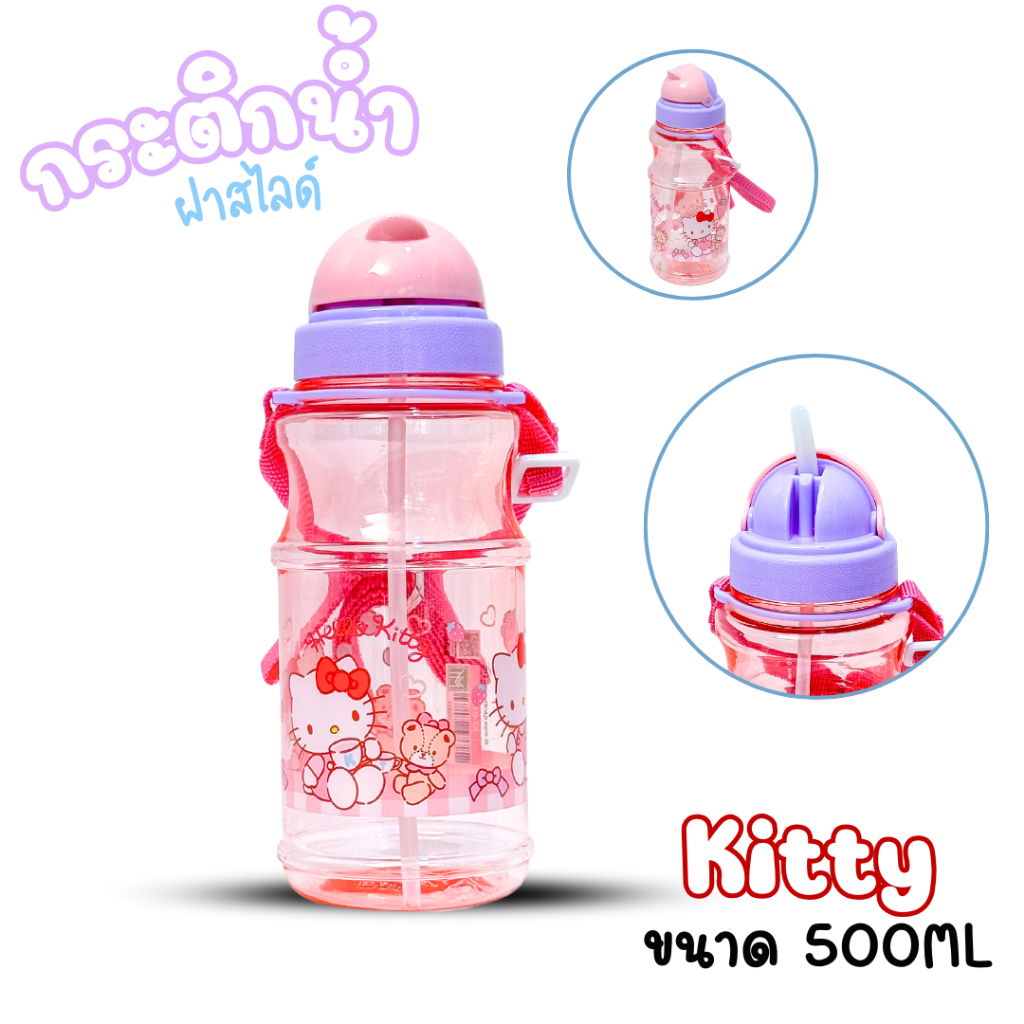 กระติกน้ำเด็กลายการ์ตูน รุ่นฝาสไลด์ ขวดน้ำพกพาคล้องคอ ขนาด 500มล. ลิขสิทธิ์แท้100%
