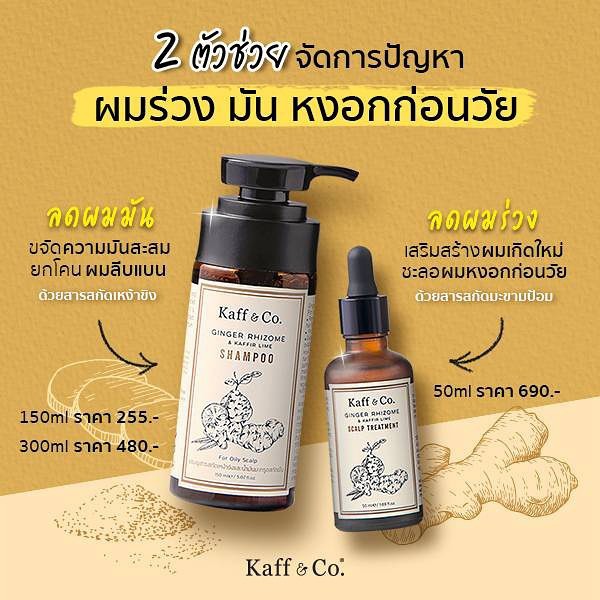 Kaff & Co Ginger Rgizome & Kaffir Lime Shampoo (Oily Scalp) แชมพูสารสกัดเหง้าขิง และ น้ำมันมะกรูดสกัดเย็น (300ml)