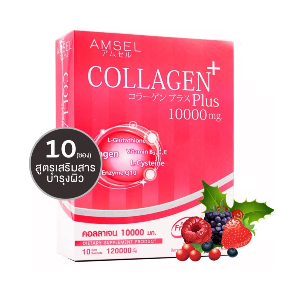 Amsel Collagen Plus Berry (10 Sac) แอมเซล คอลลาเจนพลัส 10,000 มก. รสเบอร์รี่มิกซ์ (10 ซอง)
