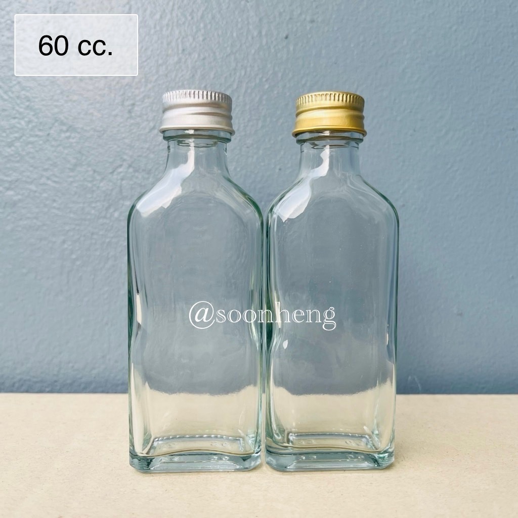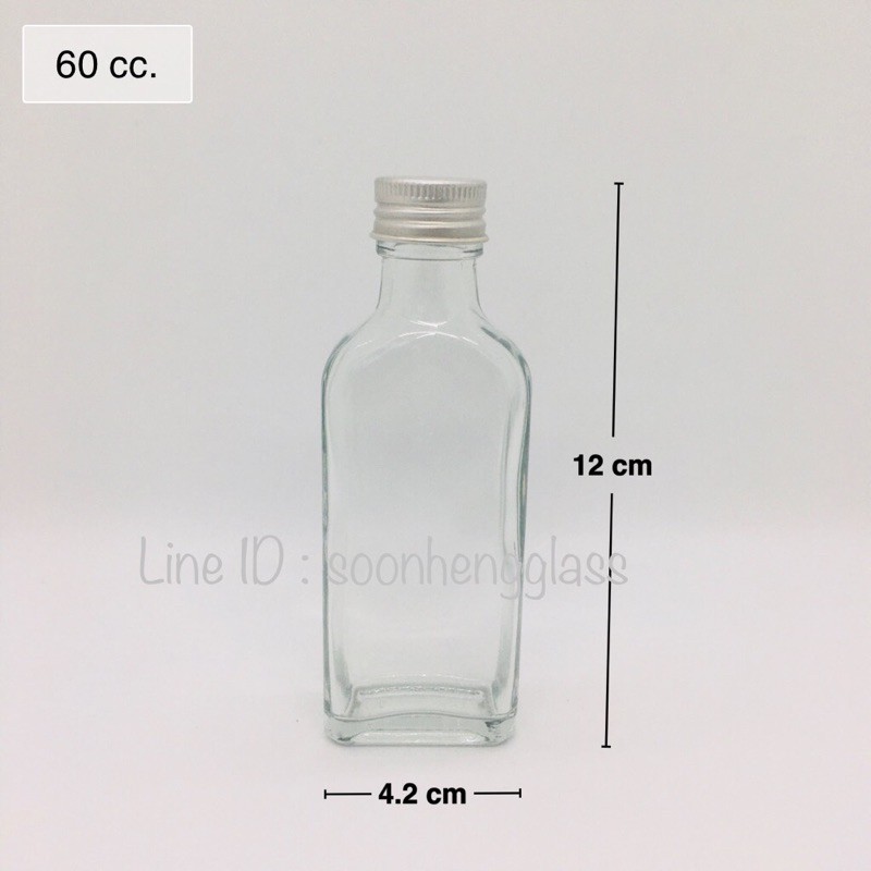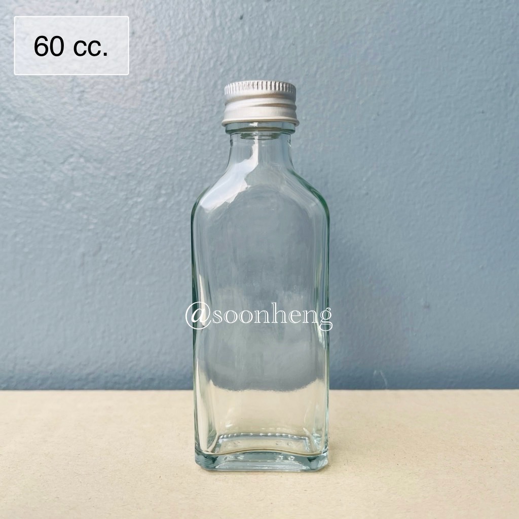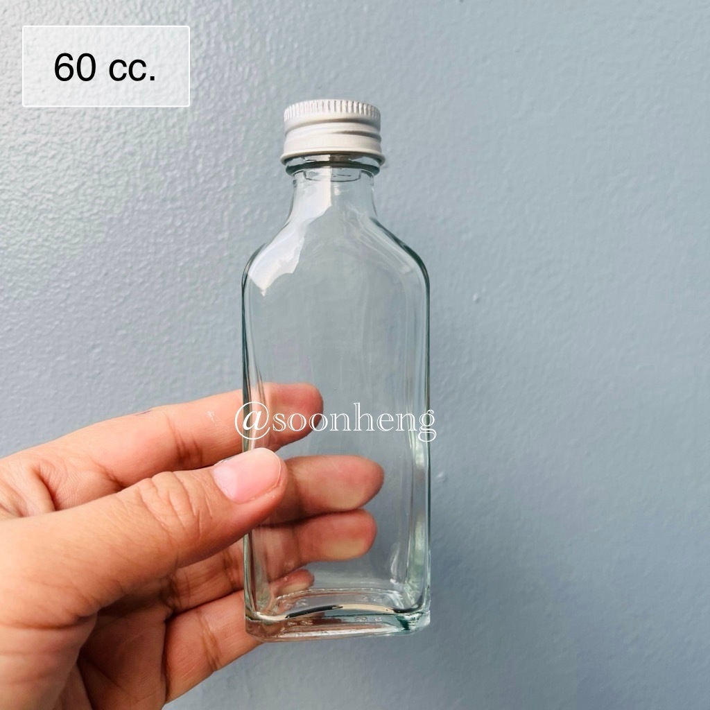 (W-9S) ขวดแก้วแบน 60 cc พร้อมฝาอลูมิเนียมและจุกใน