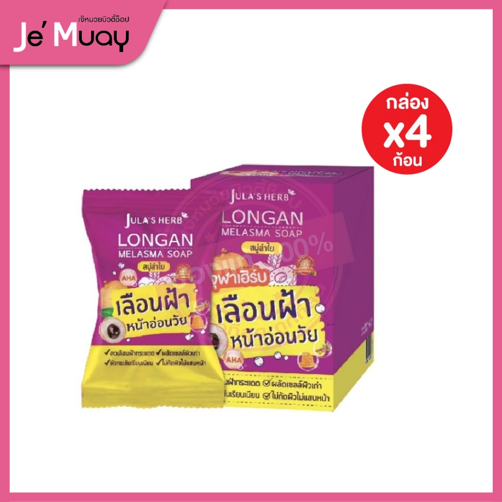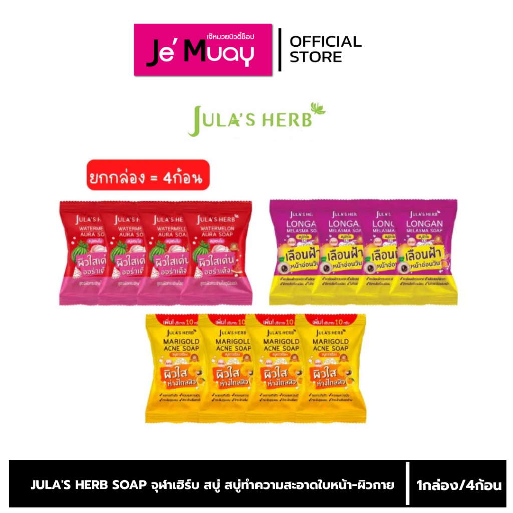[ กล่อง 4 ก้อน ] JULA'S HERB SOAP จุฬาเฮิร์บ สบู่ สบู่ล้างหน้า ทำความสะอาดใบหน้า-ผิวกาย คุมมัน ไม่อุดตัน ผิวใสมีออร่า