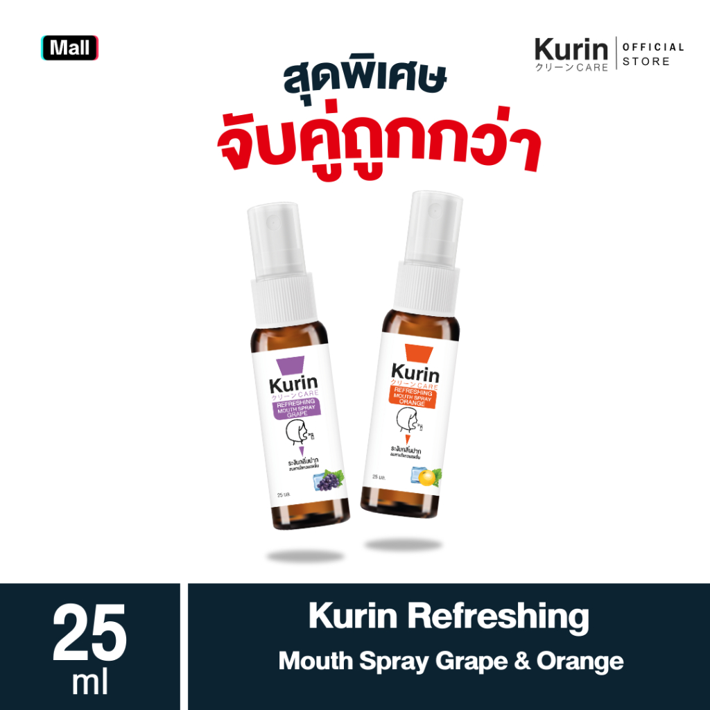 จับ คู่ Kurin care Refreshing Mouth Spray Grape & Orange 25 ml./ขวด