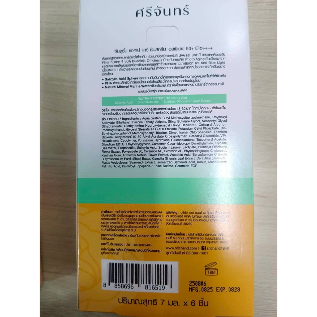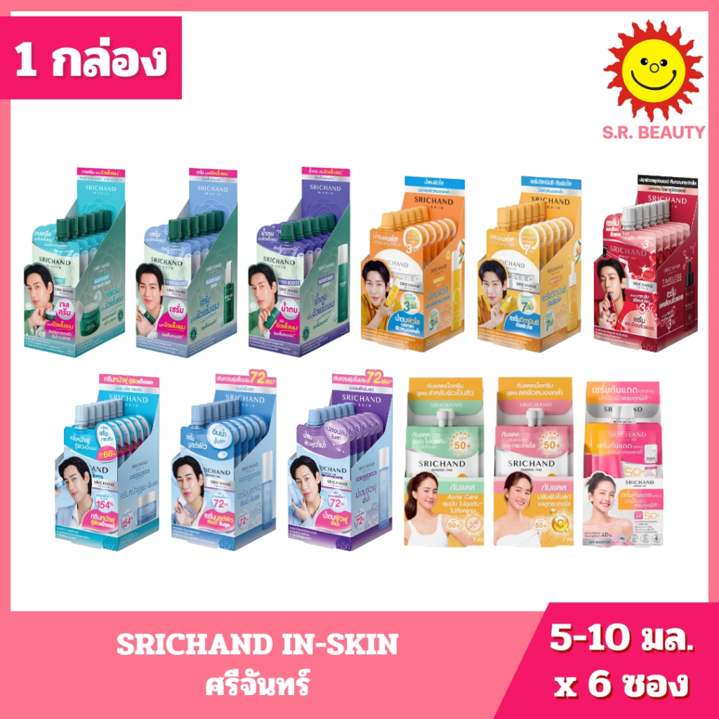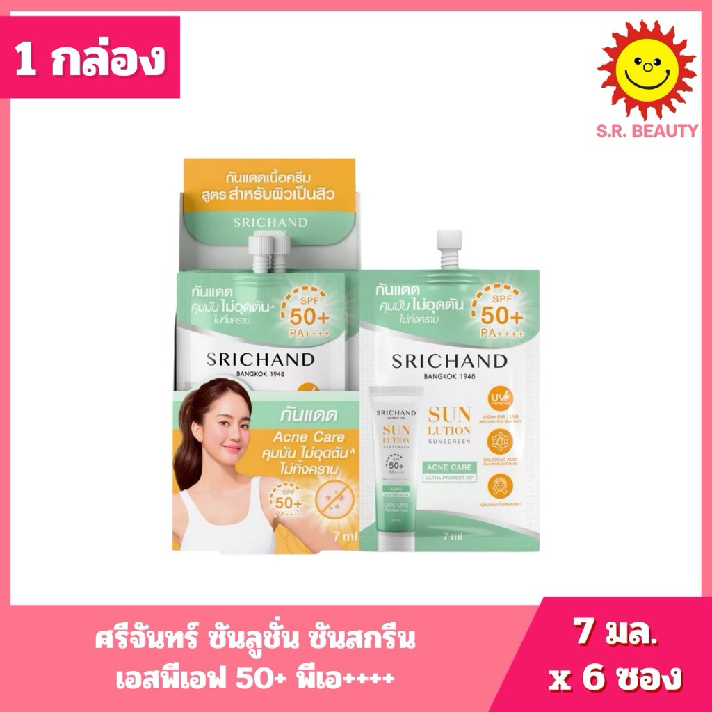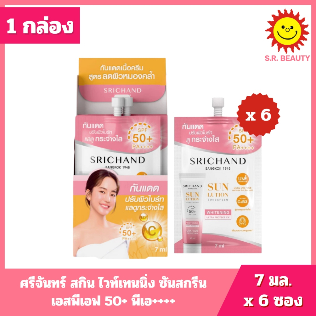 [ 1 กล่อง ] Srichand ศรีจันทร์ ซันลูชั่น ซันสกรีน เอสพีเอฟ 50+ พีเอ++++ ขนาด 7 มล. x 6 ซอง 2 สูตร