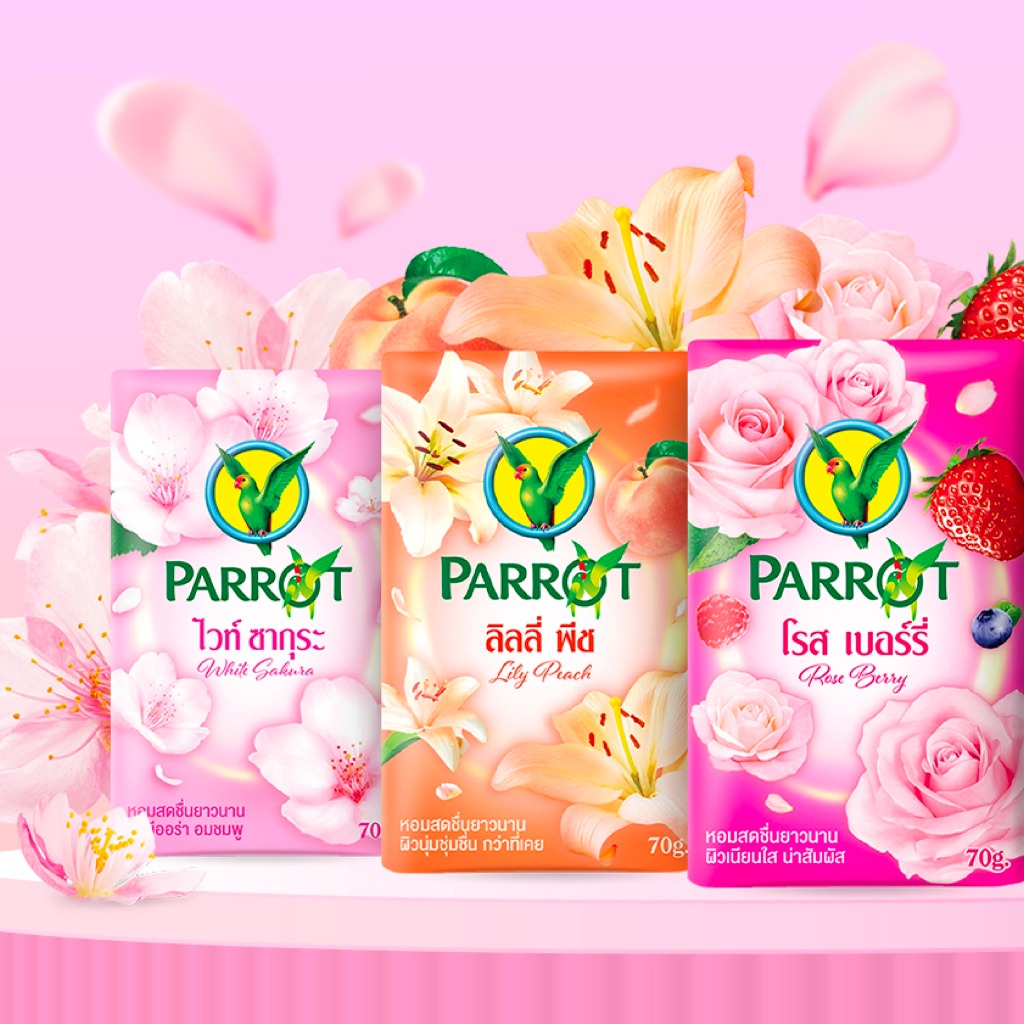 [ยกลัง]สบู่พฤกษานกแก้ว ลิลลี่ พีช 105ก. แพ็ก 4 ก้อน Parrot Botanical Bar Soap Lily Peach 105G. Pack4 สบู่ก้อน Bar soap