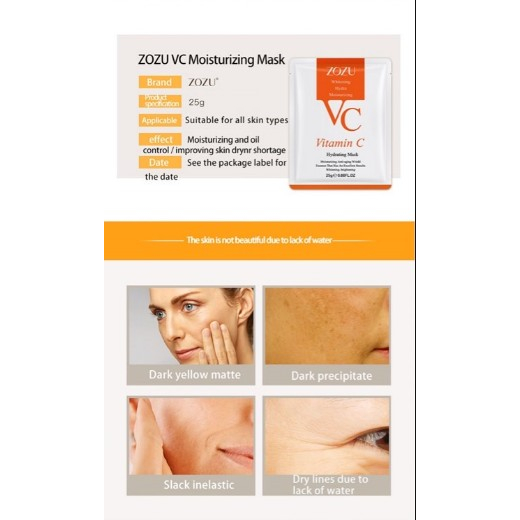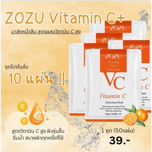 มาส์กหน้าแผ่น ZOZU มีของพร้อมส่ง มาส์กหน้าผิวใส VitaminC HYDRATING MASK ผิวเนียนนุ่ม ผิวสวย VC0385