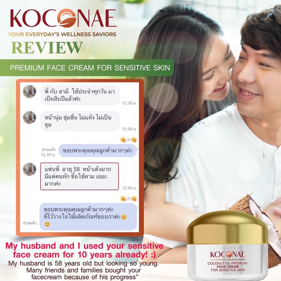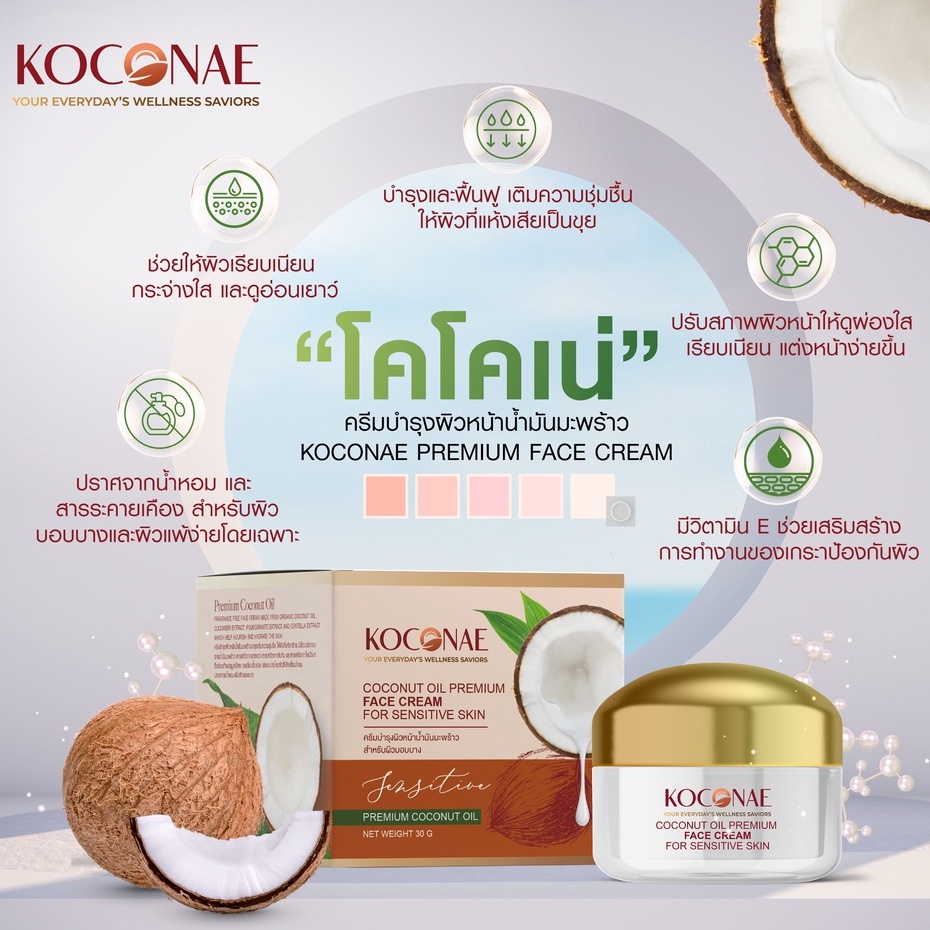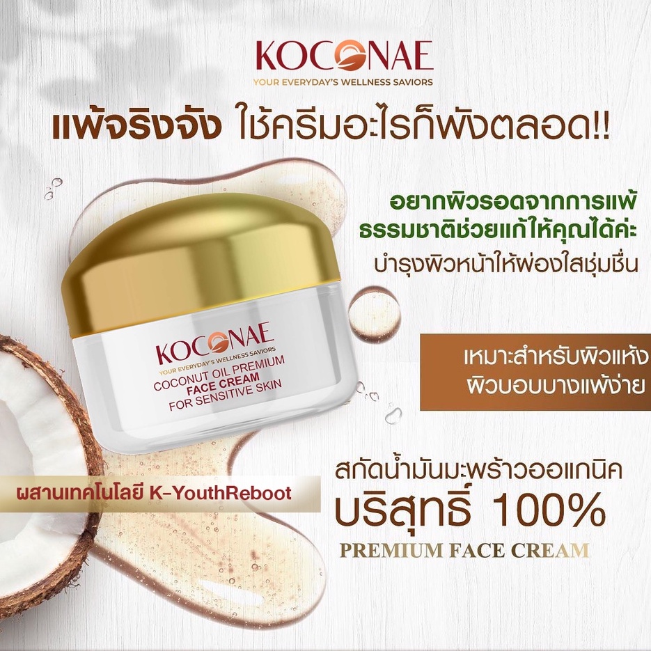ครีมน้ำมันมะพร้าว Koconae Premium face cream for sensitive skin สำหรับผิวบอบบาง