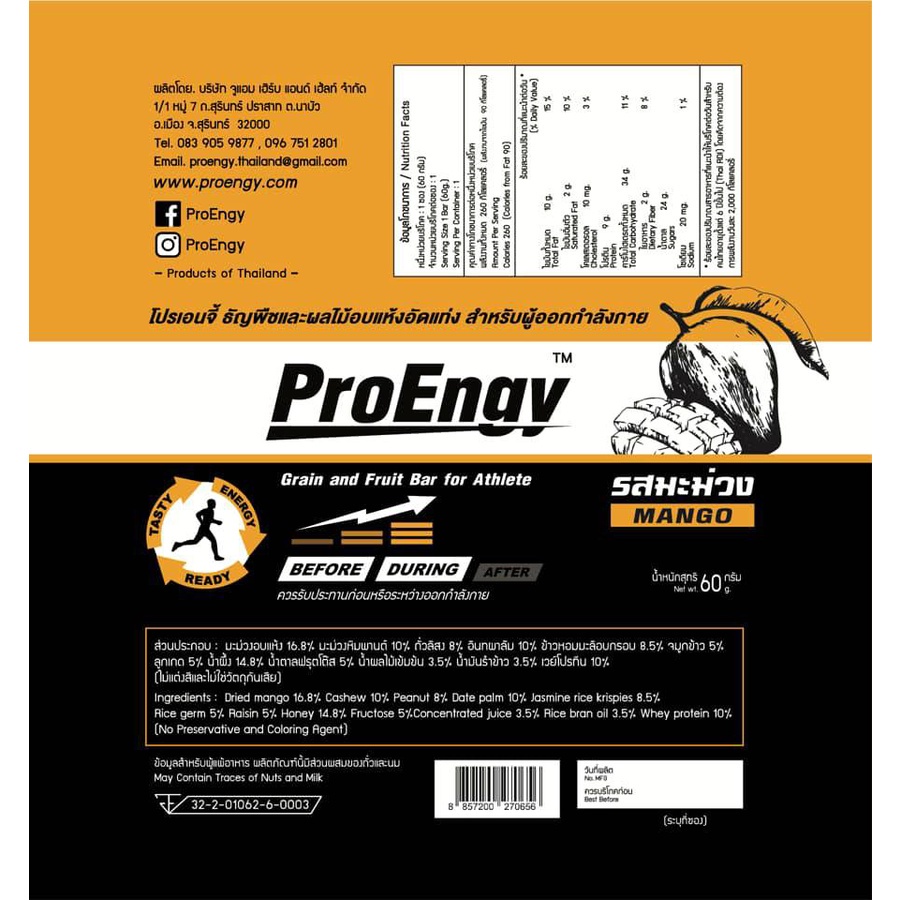 ProEngy : Energy Bar - Mango 260 Kcal./ Bar บาร์ให้พลังงานสำหรับคนออกกำลังกาย รสมะม่วง (1 Piece) (60 g)