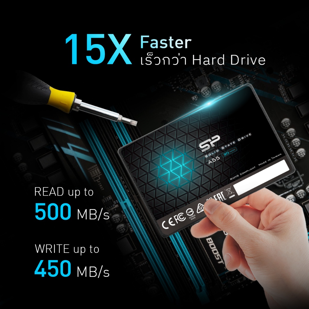 Silicon Power SSD (เอสเอสดี) SATA 3 2.5" 128 GB/ 256 GB/ 512 GB รุ่น A55 - รับประกัน 3 ปี