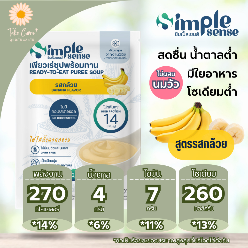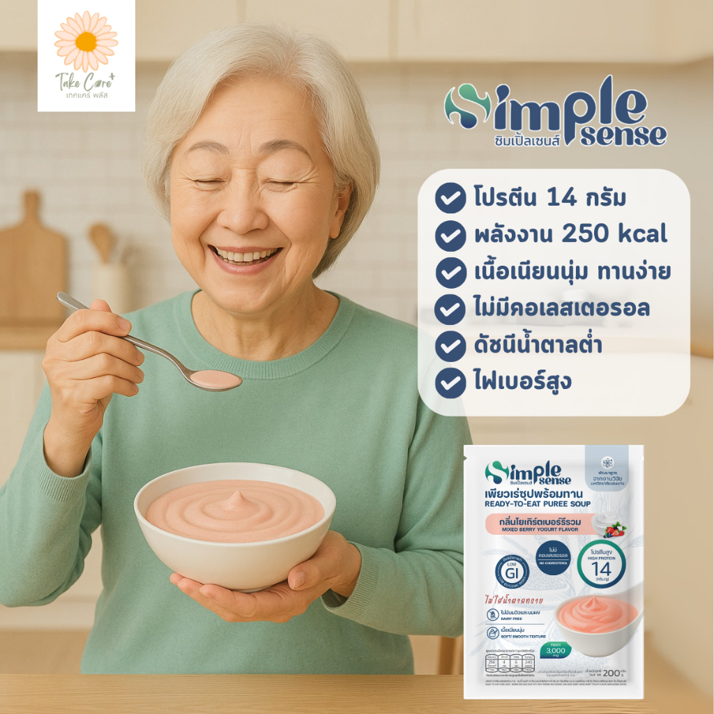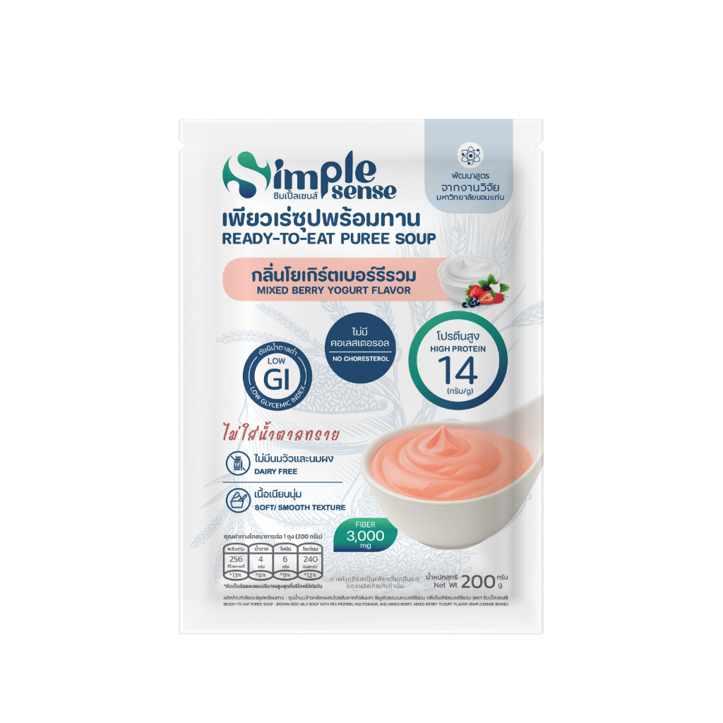 SimpleSense เพียวเร่ซุปพร้อมทาน ดัชนีน้ำตาลต่ำ 200 กรัม อาหารลดสำลัก อาหารผู้สูงอายุ ผู้ป่วยเบาหวาน