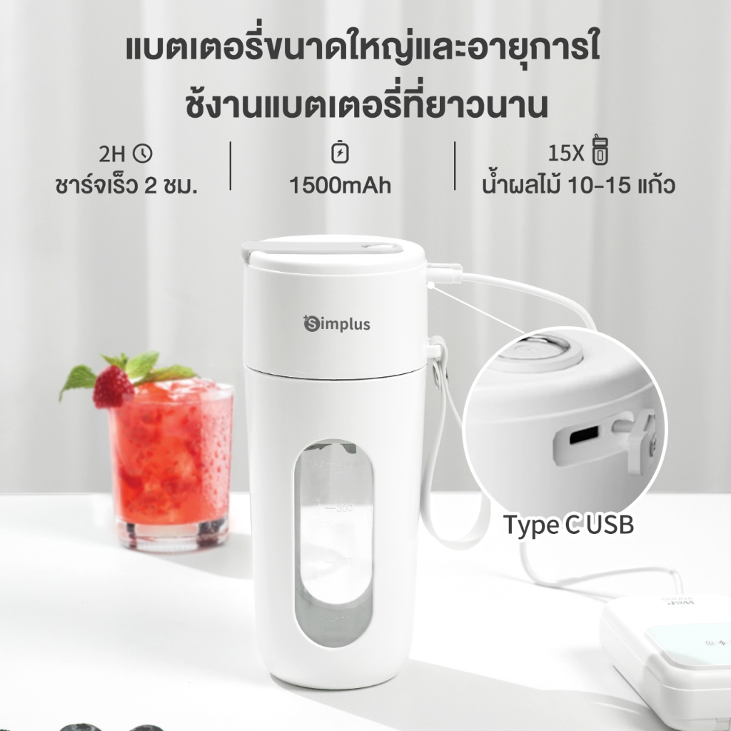Simplus×PP Krit เครื่องปั่นน้ำผลไม้พกพา ดีไซน์กะทัดรัด พกพา มัลติฟังก์ชั่น ไร้สายปั่นน้ำผลไม้ ZZJH006