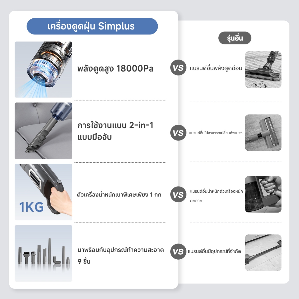Simplus x PP Krit เครื่องดูดฝุ่น 18000PA ใช้ในครัวเรือน เครื่องดูดฝุ่นแบบมีสาย มินิมอล แรงดูดทรงพลัง XCQI011