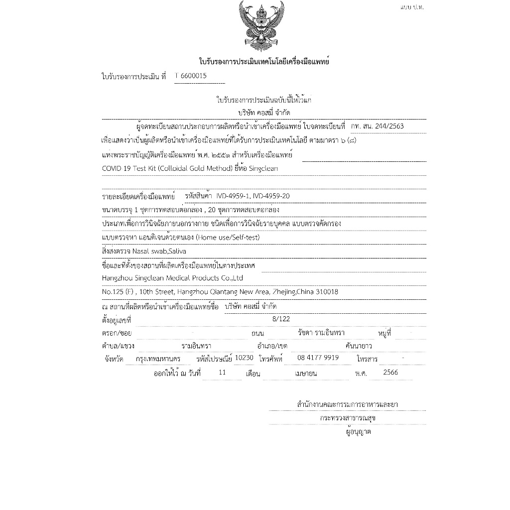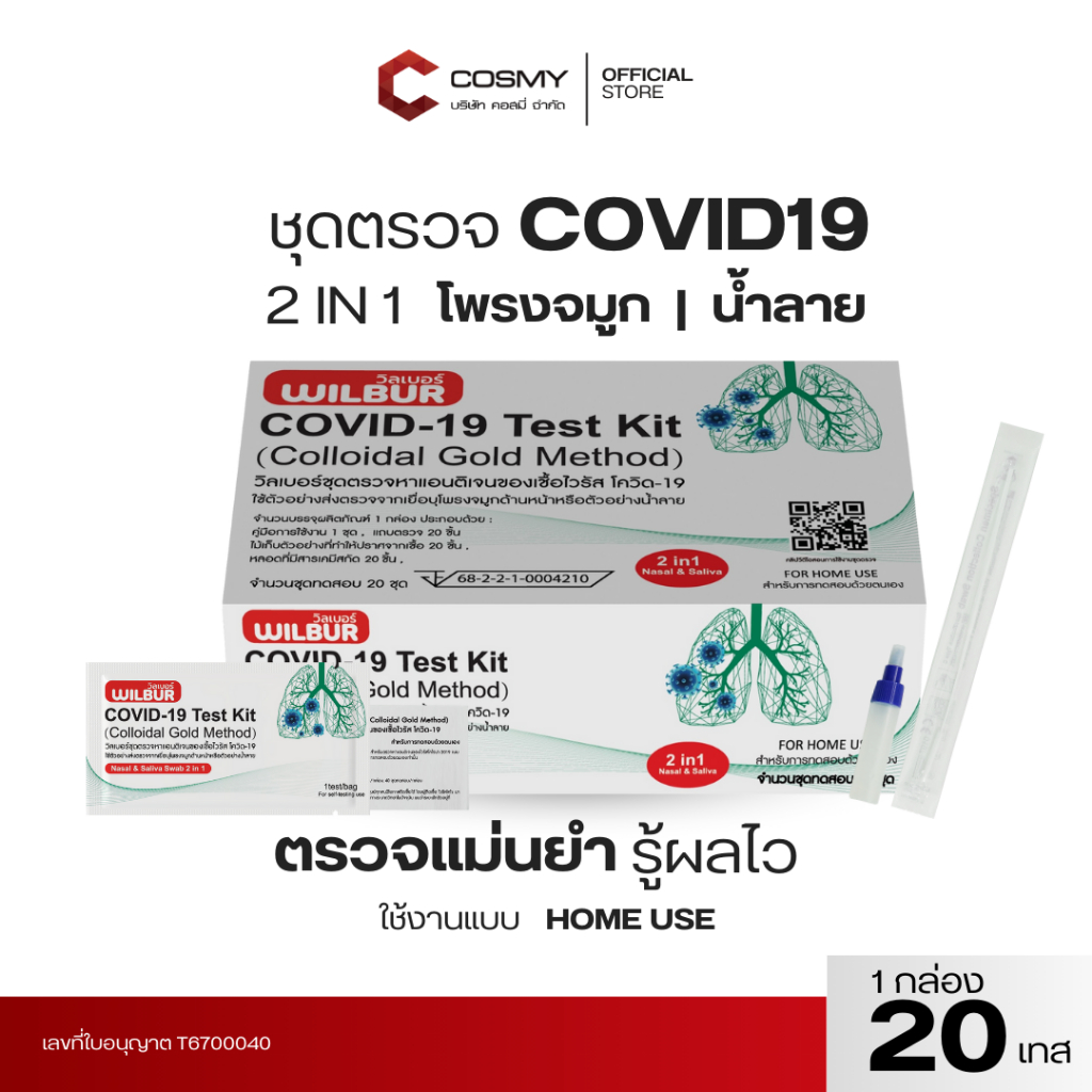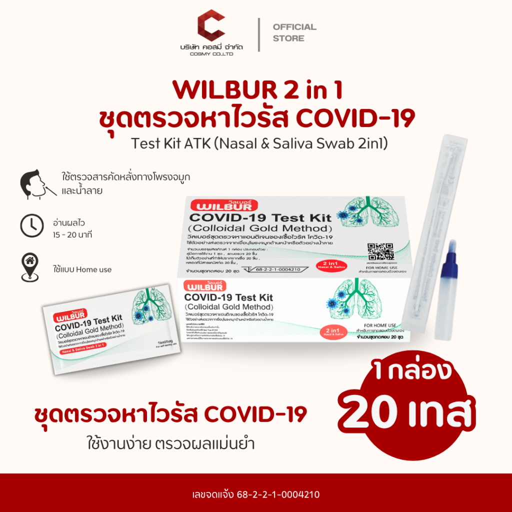 ชุดตรวจโควิด ATK Singclean 2in1 Antigen Test Kit 1กล่อง 20เทส กล่องเขียว แบบก้านยาว ATK ตรวจโควิด