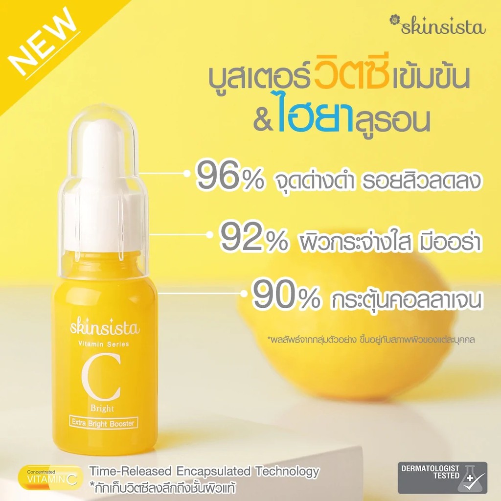 Skinsista C Extra Bright สกินซิสต้า วิตซี เอ็กซ์ตร้า ไบร์ท(เหลือง) [บูสเตอร์ 15 มล. / 2in1บูสเตอร์&ครีม 6ซอง]