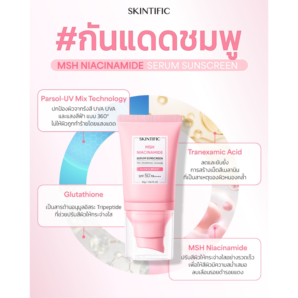 Skintific Msh Niacinamide Serum Sunscreen Glow&Bright Spf50+Pa++++ 30 g.