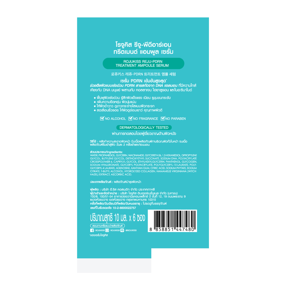 ROJUKISS REJU-PDRN Treatment Ampoule Serum 10ml โรจูคิส แอมพูลเซรั่ม บำรุงผิวชุ่มชื้น อิ่มฟู กระจ่างใส