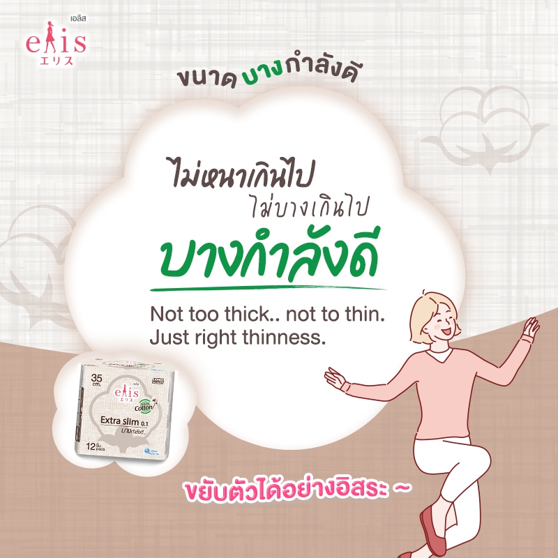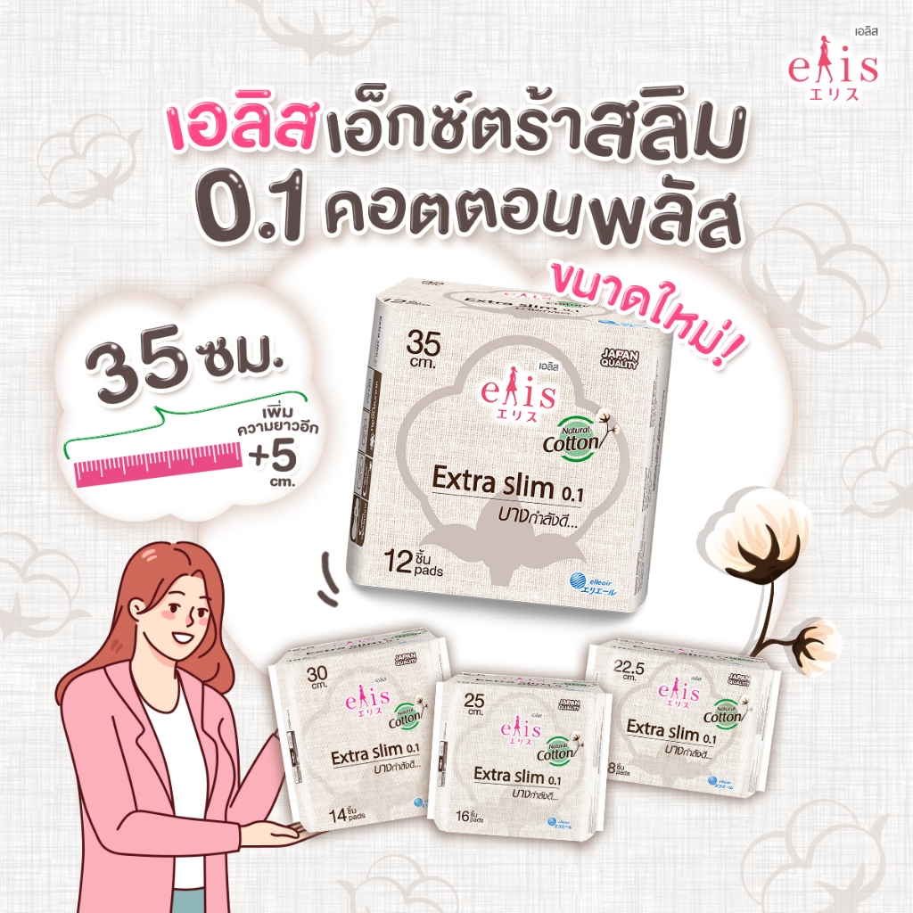 เอลิส ผ้าอนามัย เอ็กซ์ตร้า สลิม กลางคืน 0.1 35 ซม. 12 ชิ้น/Elis Extra Slim 0.1 35 cm. Night 12 Pcs.