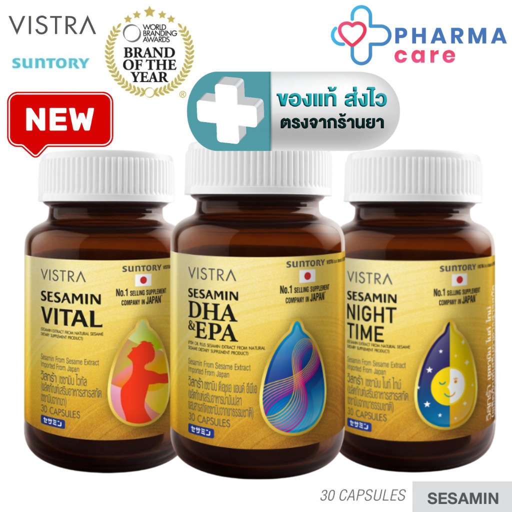 VISTRA SESAMIN NIGHT TIME (SEASAME EXTRACT FROM JAPAN) วิสทร้า เซซามิน ไนท์ ไทม์ / สูตร VITAL, DHA&EPA 30 แคปซูล [PC]