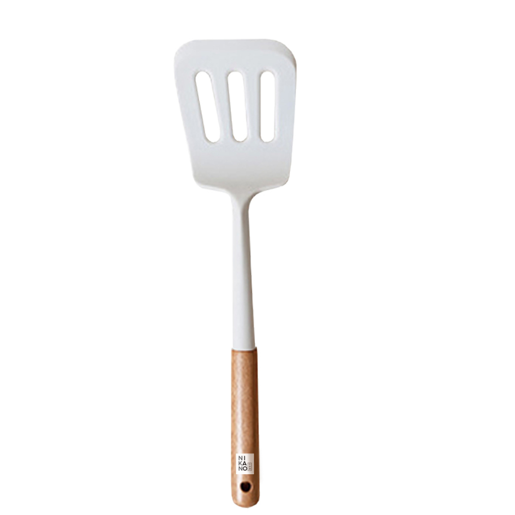 [Sale]NIKANO White Silicone Kitchenware อุปกรณ์เครื่องครัว ตะหลิว กระบวย ตะหลิวมีช่อง ที่ตักเส้น กระบอกเก็บ กระชอน