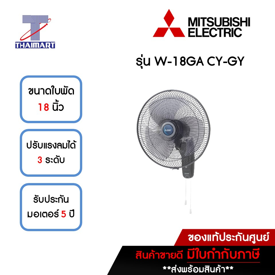 MITSUBISHI พัดลมติดผนัง 18 นิ้ว รุ่น W-18GA-CY-GY | ไทยมาร์ท THAIMART