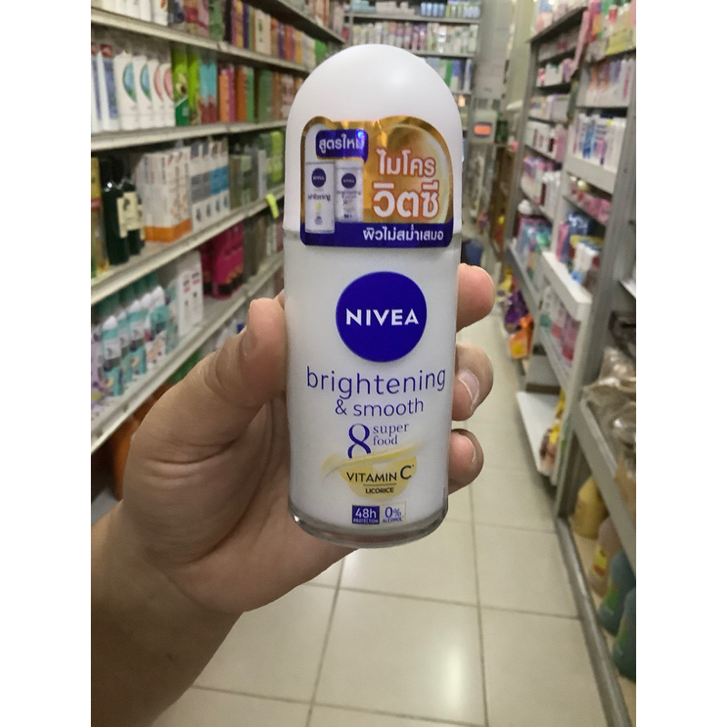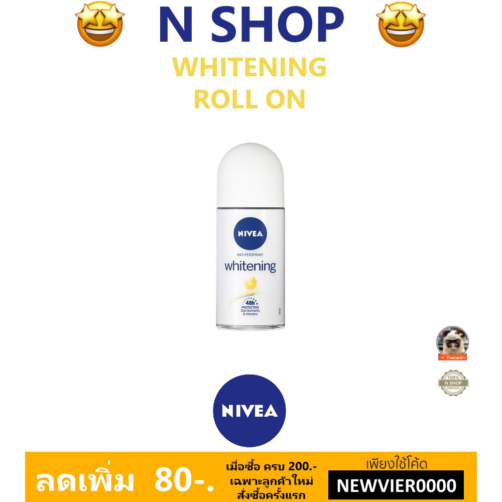 🌟 ลูกกลิ้ง โรลออน ไวท์เทนนิ่ง ระงับกลิ่นใต้วงแขน นีเวีย NIVEA WHITENING ROLL ON 50ml.