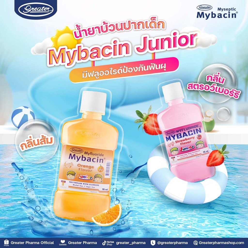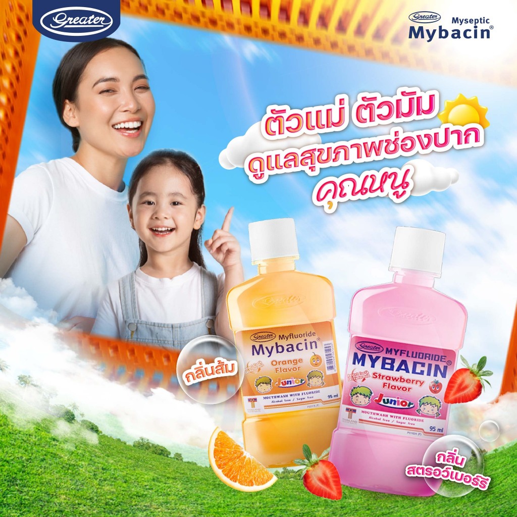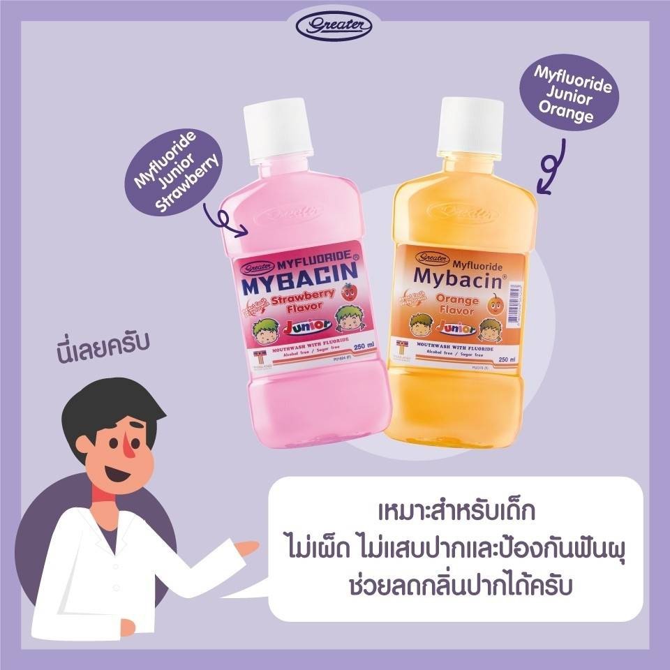 (1แถม1) Myseptic Mybacin Mouthwash Junior 250ml มายเซฟติค มายบาซิน น้ำยาบ้วนปาก จูเนียร์ 250มล