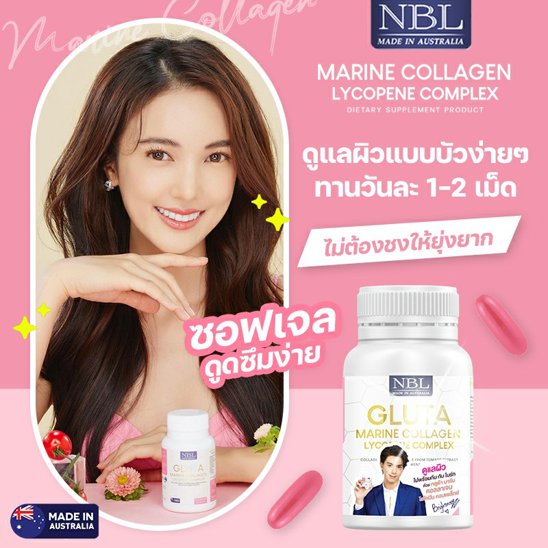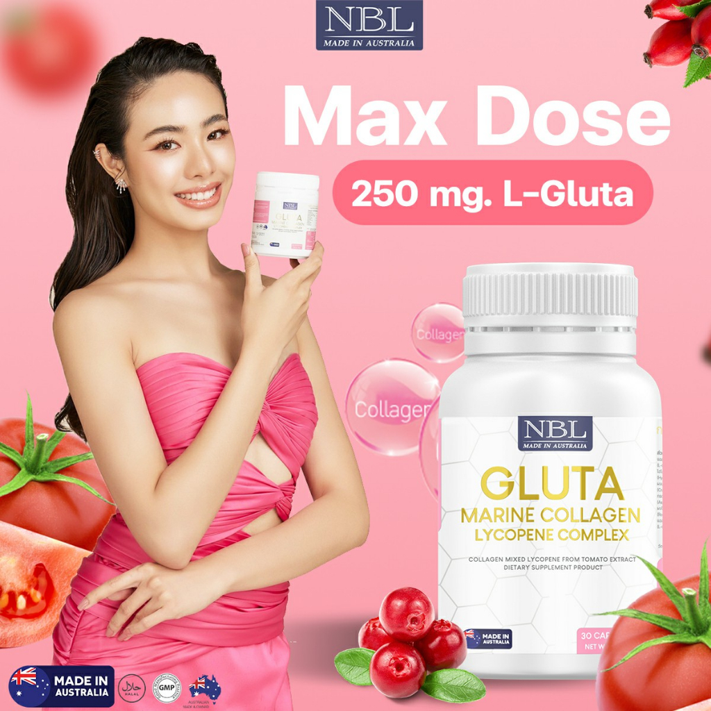 NBL Gluta Marine Collagen Lycopene Complex 1650 mg - กลูต้า มารีน คอลลาเจน (30 Capsules) กลูต้าไบร์ท
