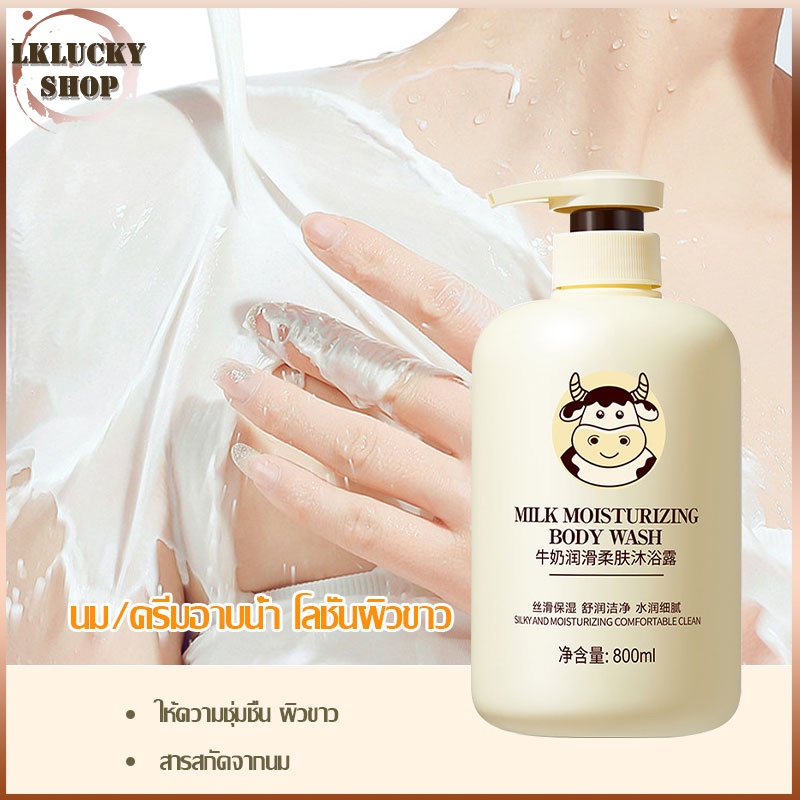 เจลอาบน้ำน้ำนม Milk Body Wash กลิ่นหอมติดทน เพิ่มความขาวกระจ่างใส ช่วยให้ผิวชุ่มชื้น เต่งตึง 800ml(124)