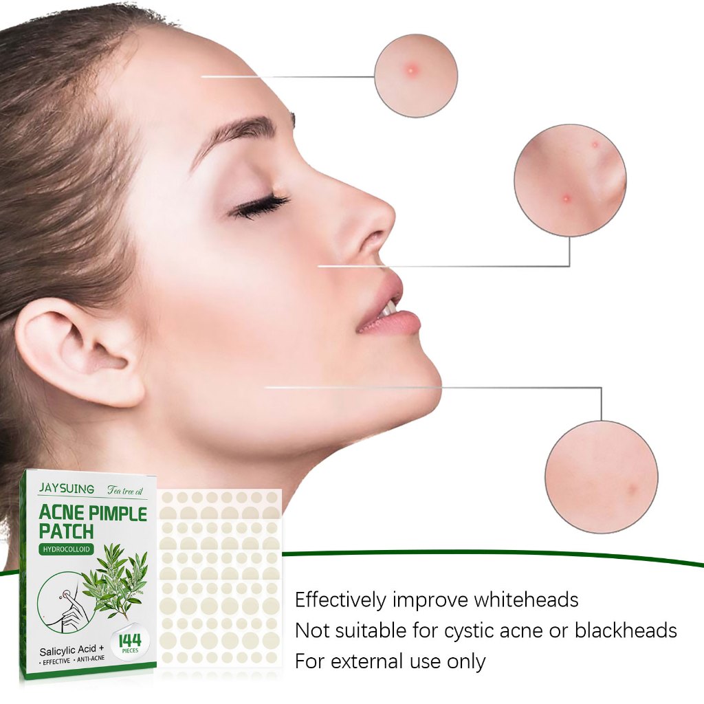 Jaysuing แผ่นแปะสิว น้ํามันทีทรี กรดซาลิซิลิก ช่วยดูดสิว รักษาสิว ลดอาการอักเสบให้ยุบไว ขอบบาง กันน้ำ Acne patch 144ชิ้น