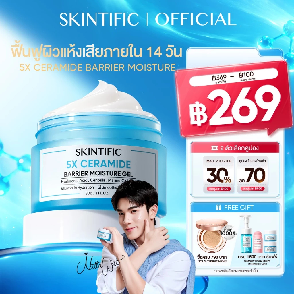 มอยส์เจอร์ไรเซอร์เจลเซราไมด์ 5X 30 กรัม เนื้อบางเบา ซึมซาบเร็ว เหมาะกับทุกสภาพผิว