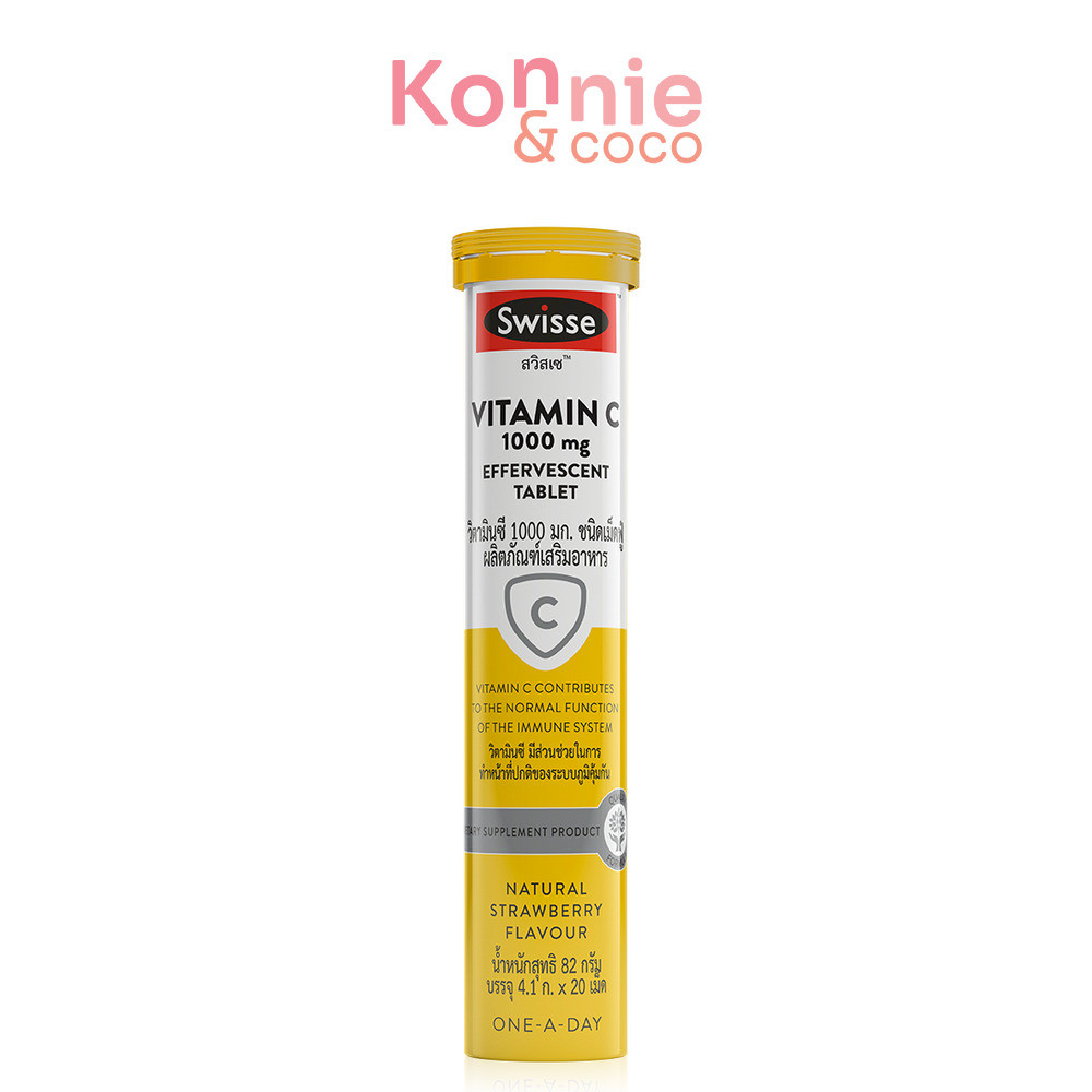 SWISSE Vitamin C 1000mg Effervescent 20 Tablets สวิสเซ วิตามินซี 1000 มก. ชนิดเม็ดฟู่ กลิ่นสตรอว์เบอร์รี.