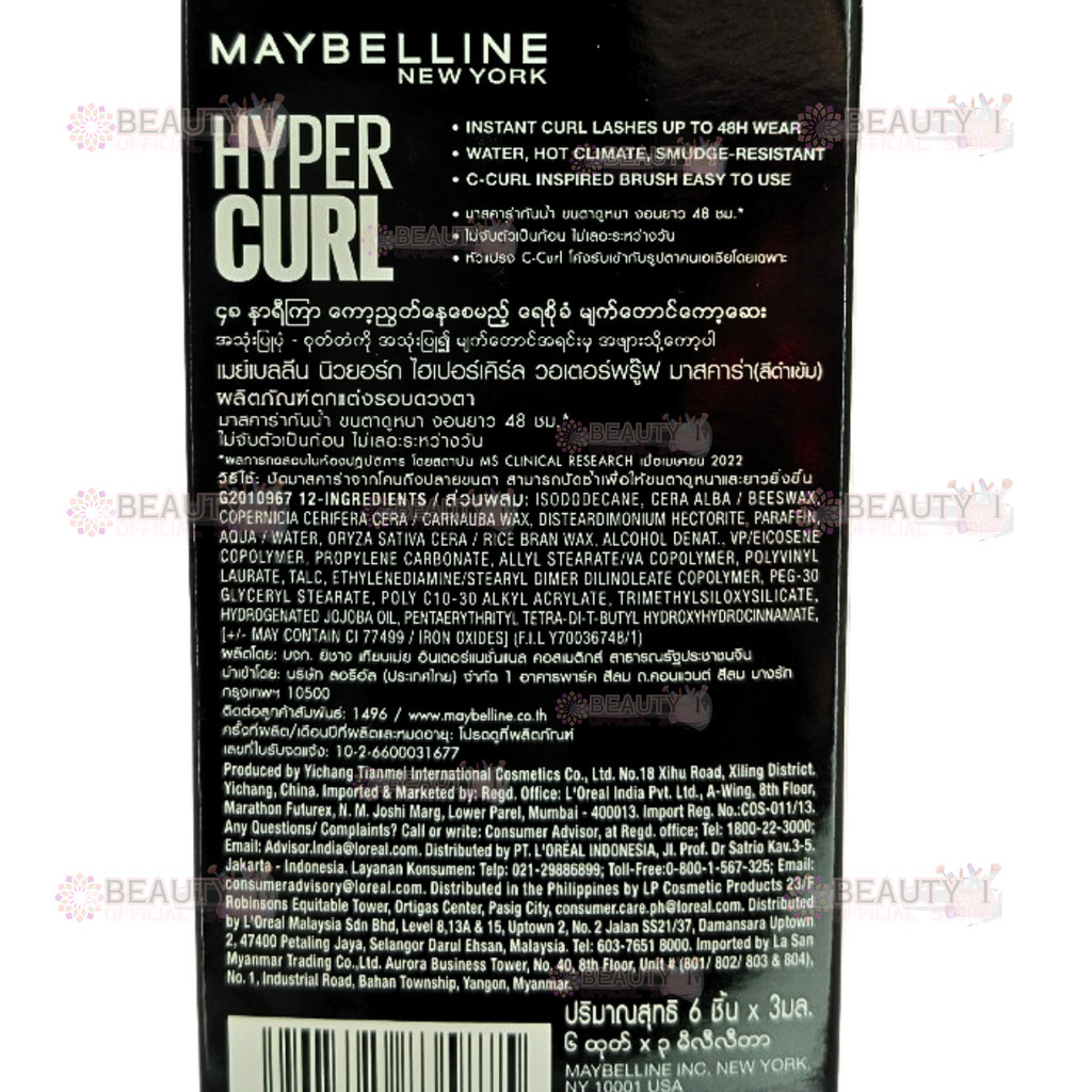 โปร 2 ชิ้น ไฮเปอร์เคิร์ล มาสคาร่า เมย์เบลลีน นิวยอร์ก Maybelline New York Hypercurl 3 ml. x2