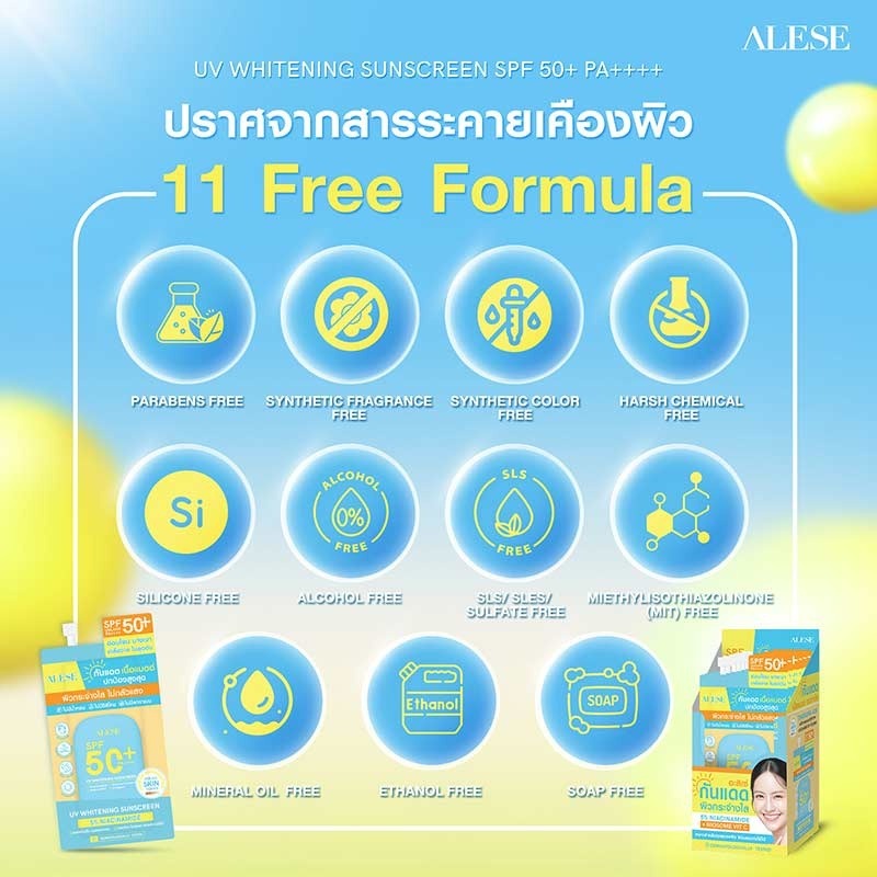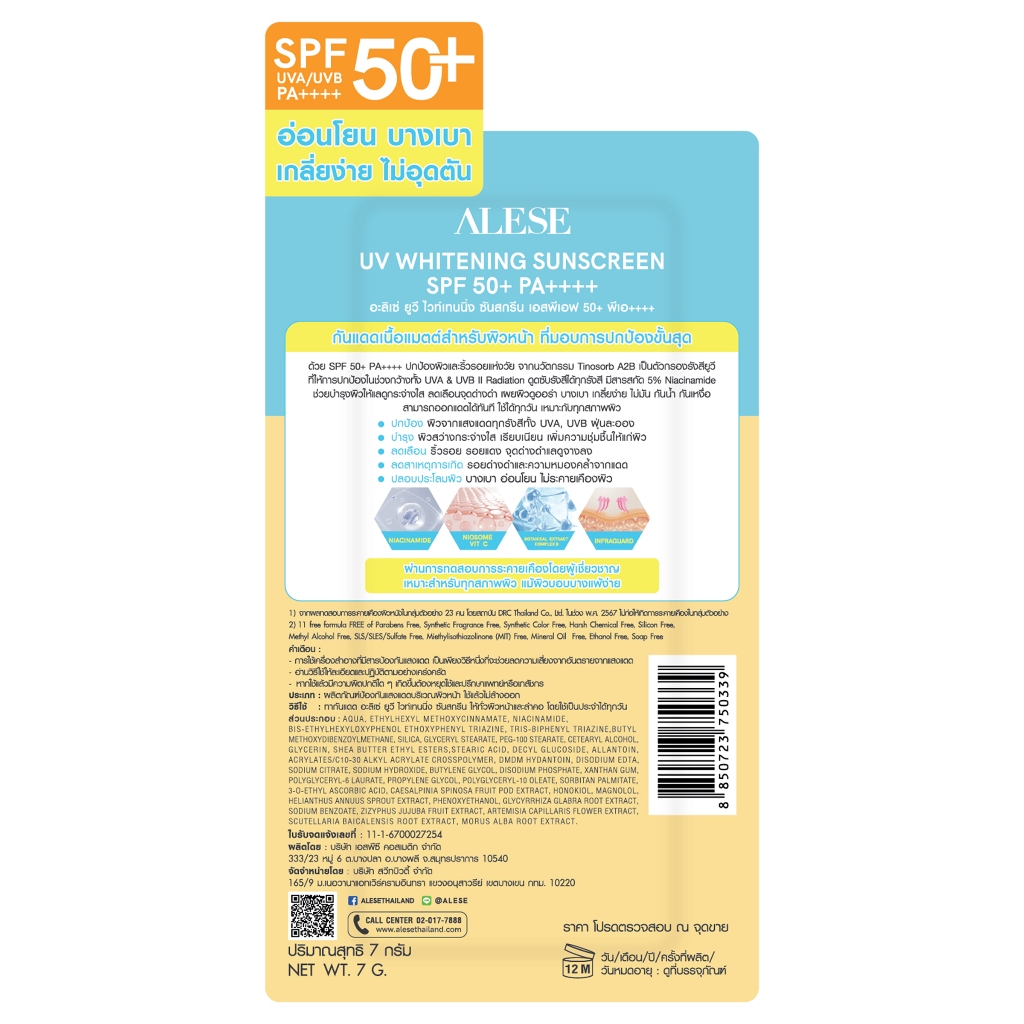 ALESE - Whitening Sunscreen SPF 50+ PA++++ (7g.) อะลิเซ่ ยูวี ไวท์เทนนิ่ง ซันสกรีน เอสพีเอฟ 50+ พีเอ++++ 7 กรัม
